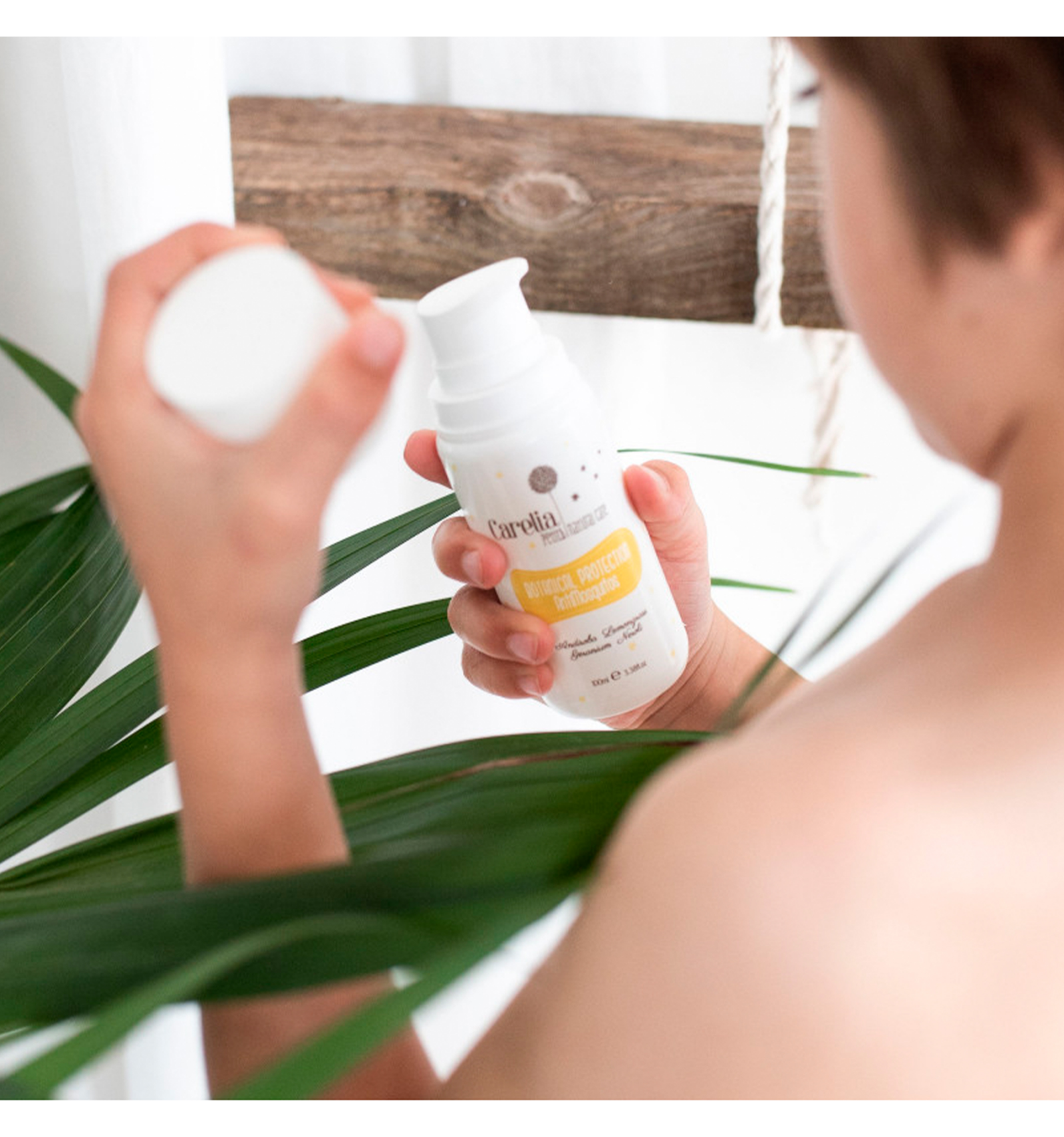 Loción protectora antimosquitos para bebés y para toda la familia.