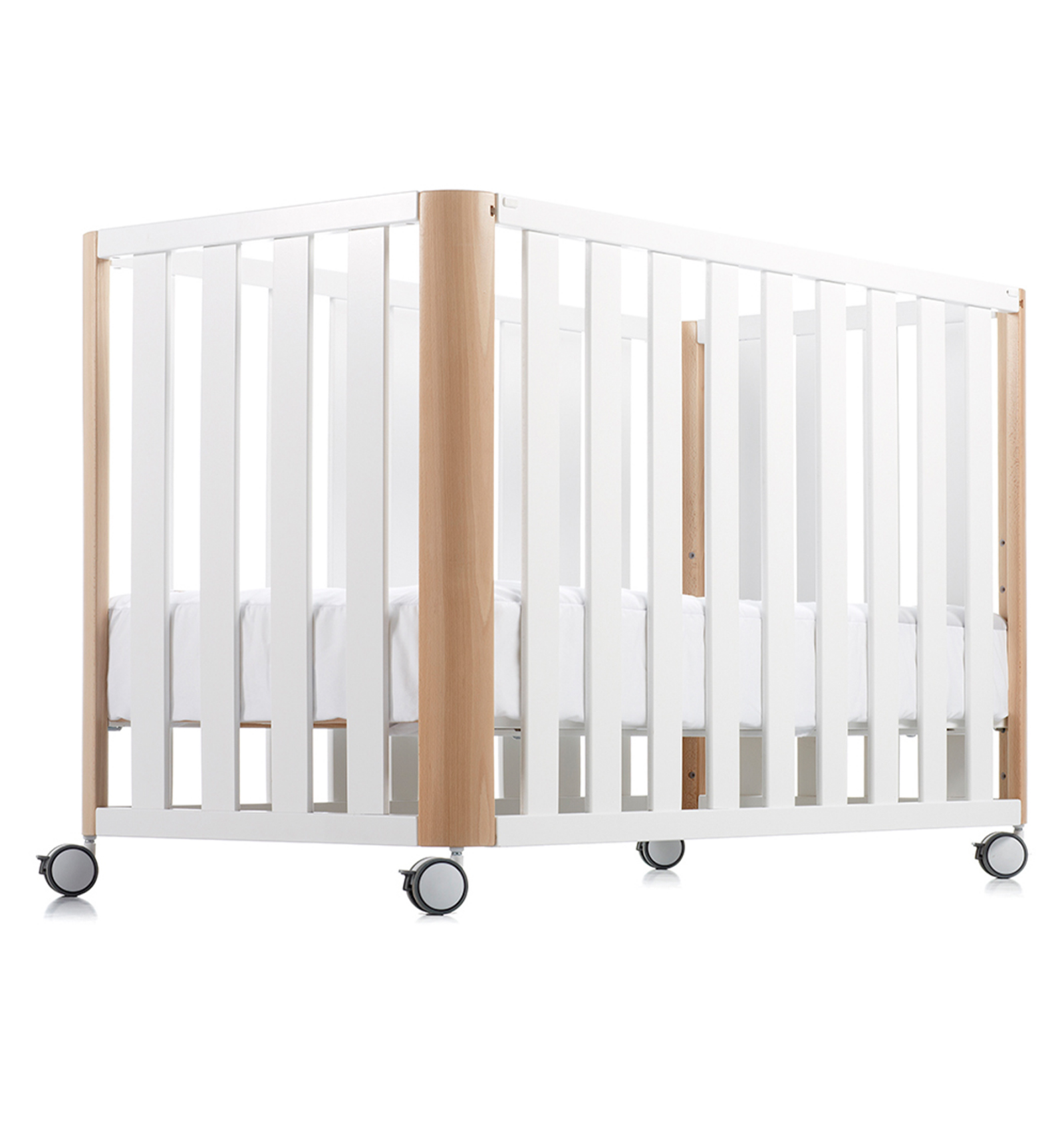 Una cuna 4 en 1, pensada para practicar el colecho o para fomentar la independencia del bebé. Se puede unir la cuna a la cama de los padres o se puede usar como sofá o parque infantil.