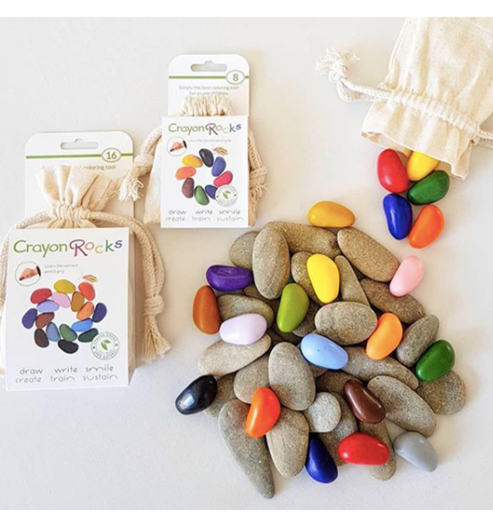Los Crayon Rocks son lápices de colores a base de soja natural cultivada en EEUU y coloreadas con pigmentos minerales naturales.