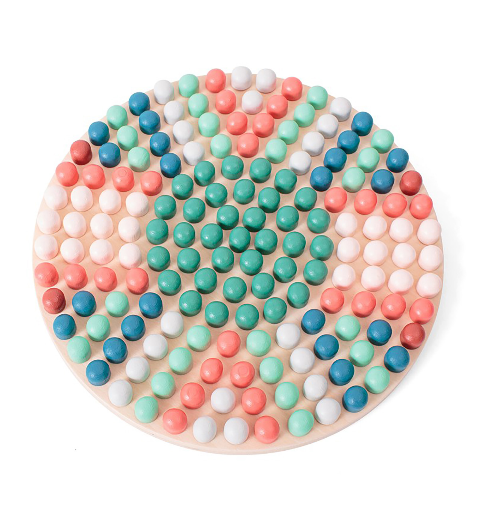 Fabricado con materiales de alta calidad como madera y cartón, este juego es duradero y seguro. Viene con un tablero de 19 cm de diámetro, 217 clavijas de colores de 1 x 2 cm cada una y una práctica bolsa de algodón para almacenar todas las piezas.
