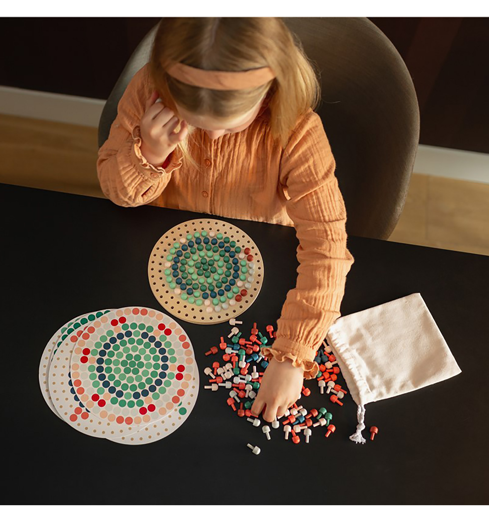 El tablero de mosaico con clavijas de BS Toys es perfecto para que los niños desarrollen habilidades mientras se divierten. Recrea patrones de las tarjetas o crea diseños únicos con 217 clavijas de colores. Ideal para mejorar la coordinación ojo-mano, habilidades motoras finas y creatividad. Incluye tablero de madera, clavijas y bolsa de algodón. Diámetro del tablero: 19 cm.