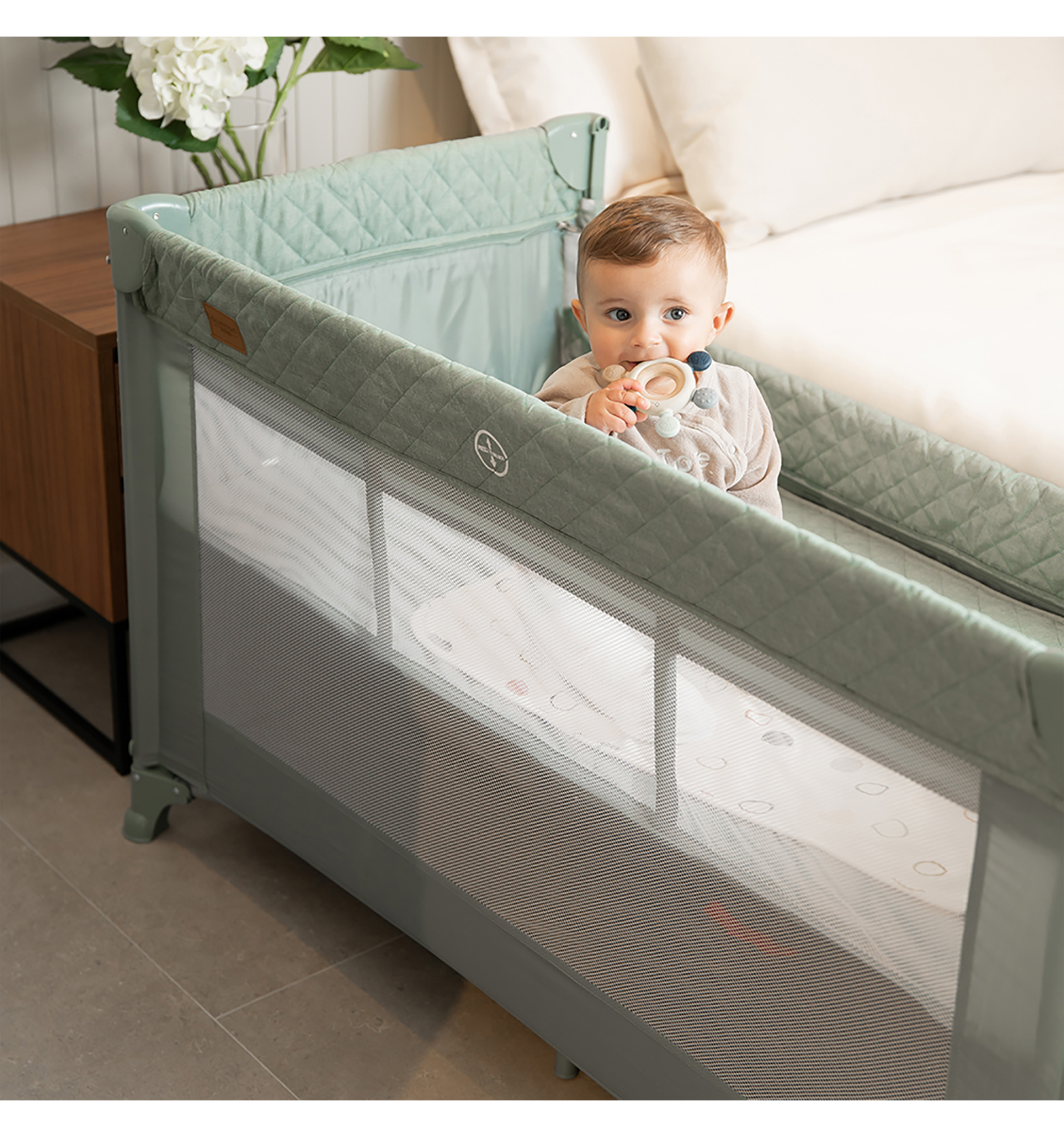 La cuna de viaje y colecho Olmitos es la elección perfecta para familias que buscan seguridad y comodidad tanto en casa como durante sus viajes. Su diseño versátil permite utilizarla como cuna independiente, colecho o parque de juegos, adaptándose a las necesidades de cada etapa.