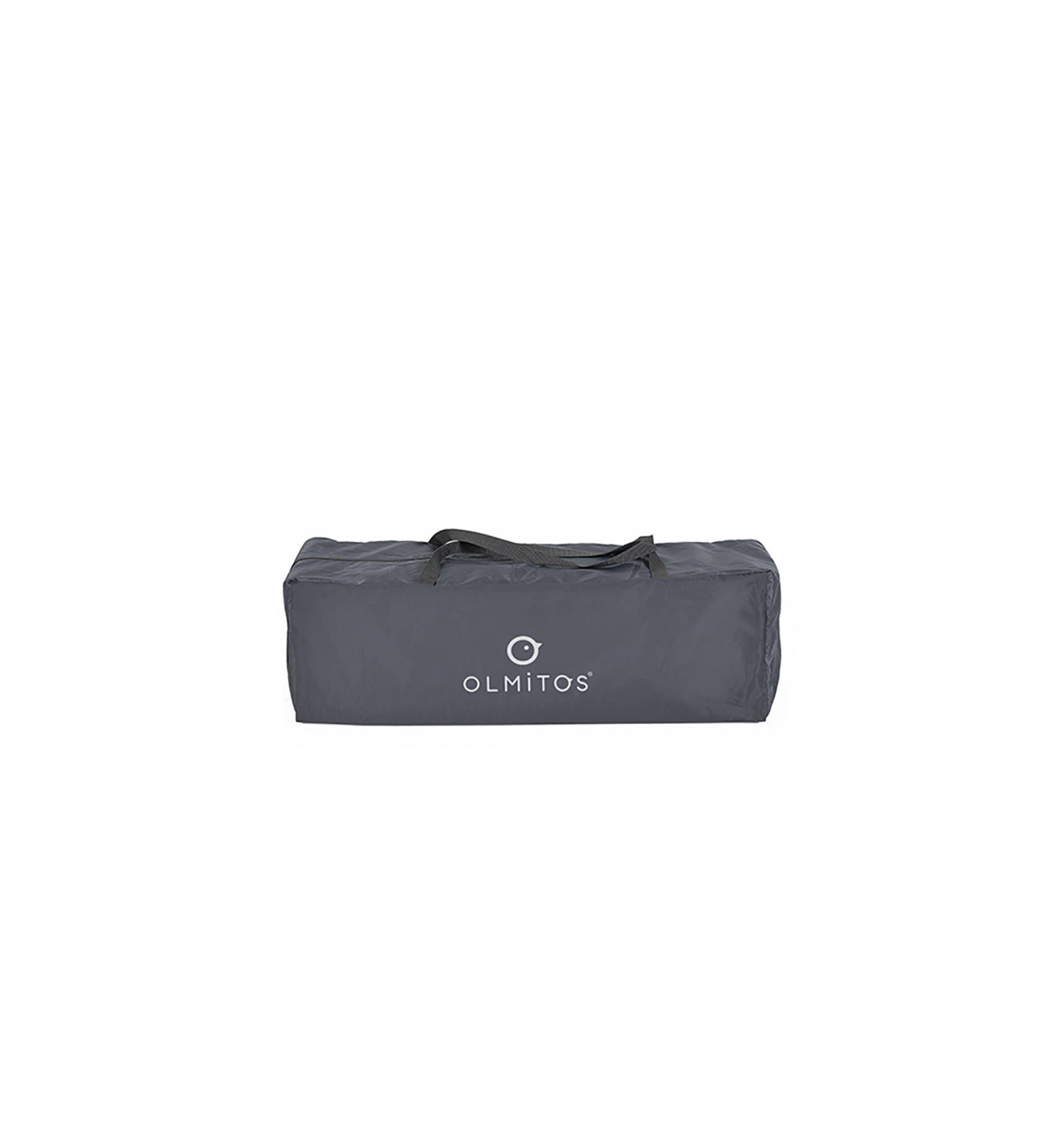 Cuna de viaje y colecho Olmitos, ligera y compacta, ideal para dormir juntos de manera segura. Regulable en altura, lateral abatible y doble función como parque de juegos. Incluye colchoneta, ruedas con freno y bolsa de transporte. Perfecta para recién nacidos hasta 15 kg.