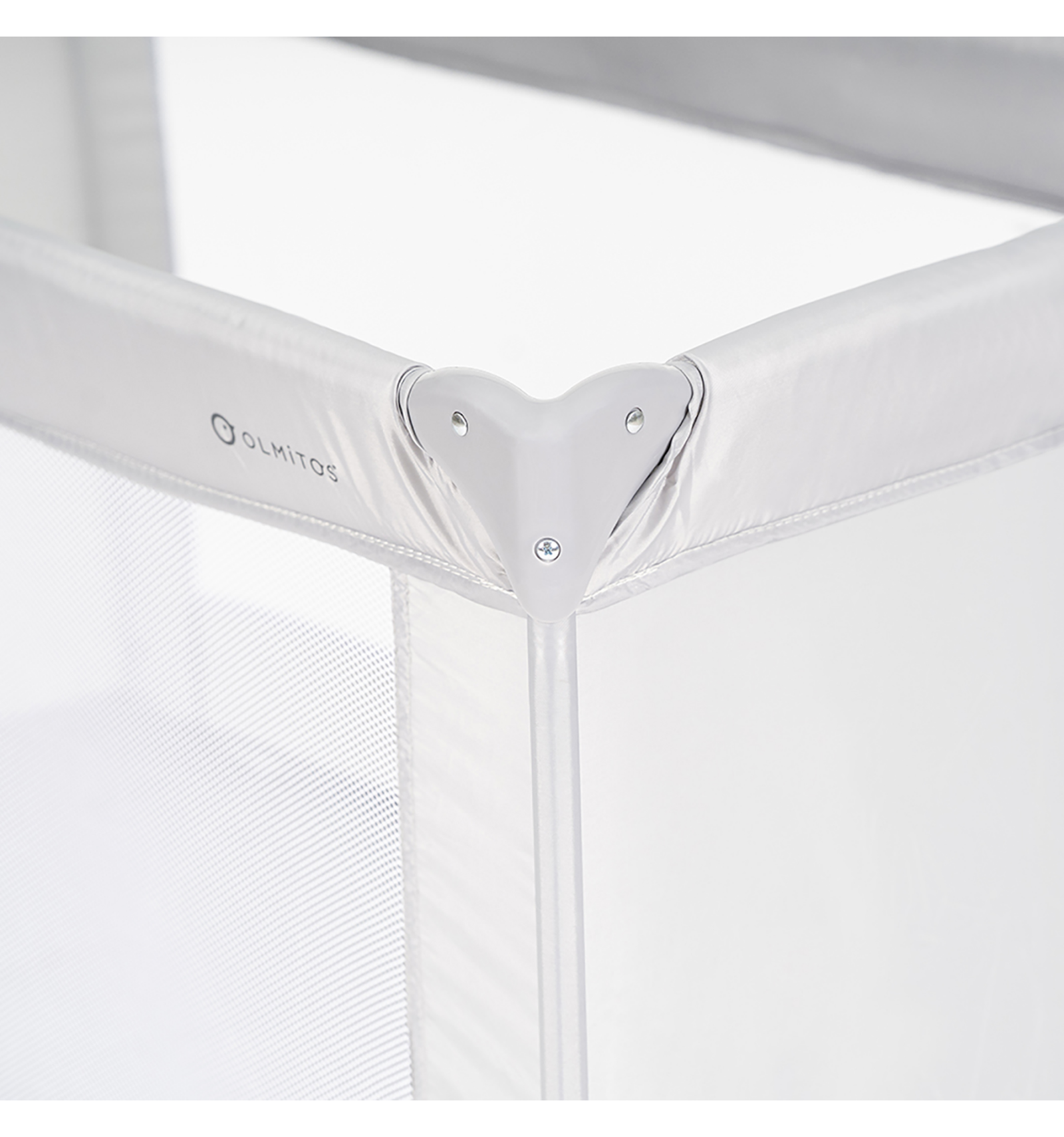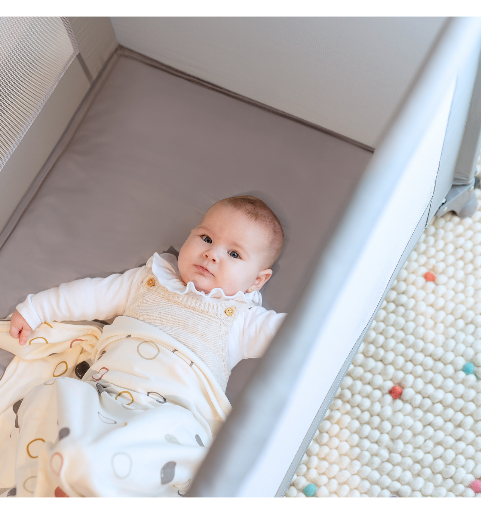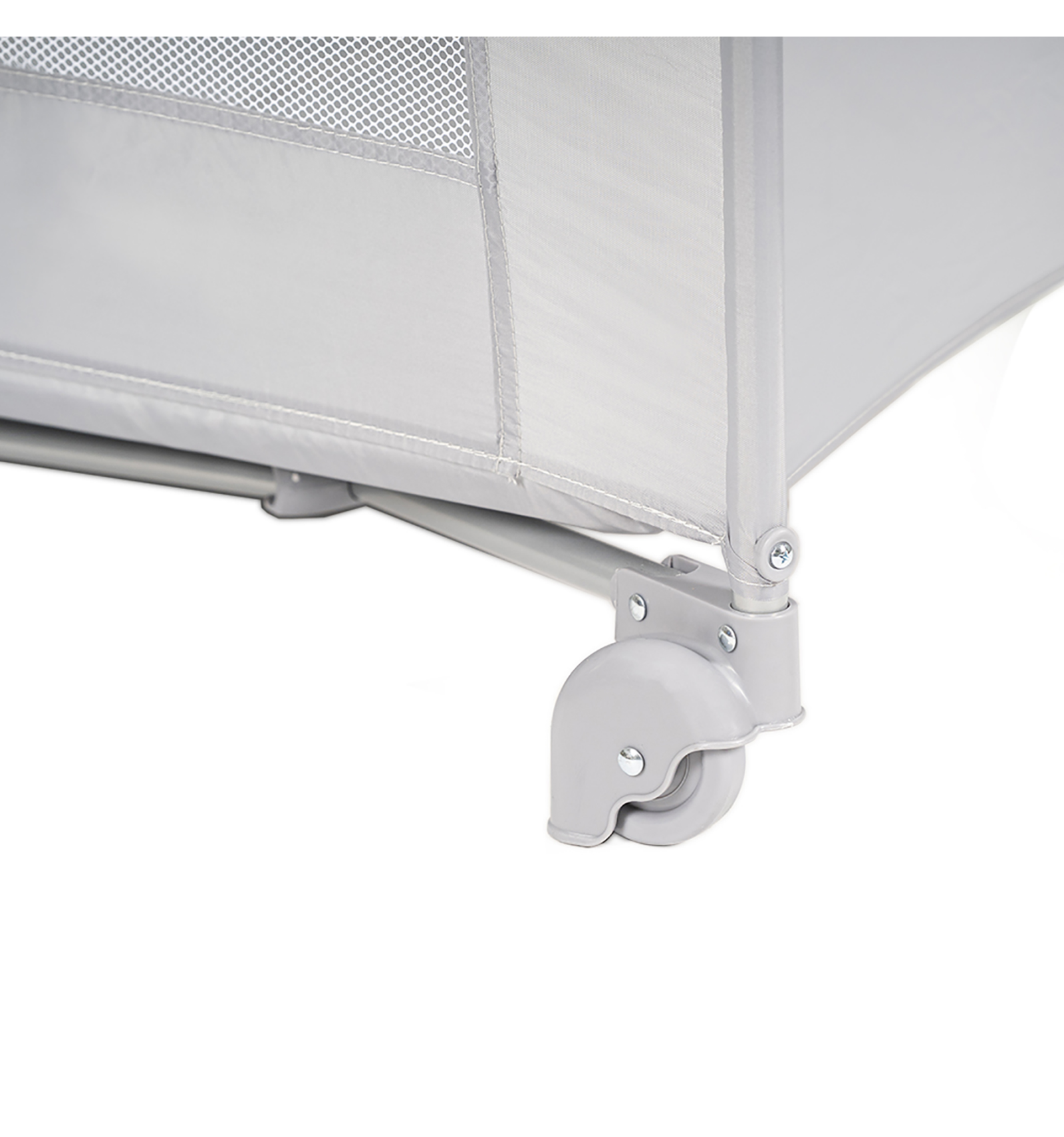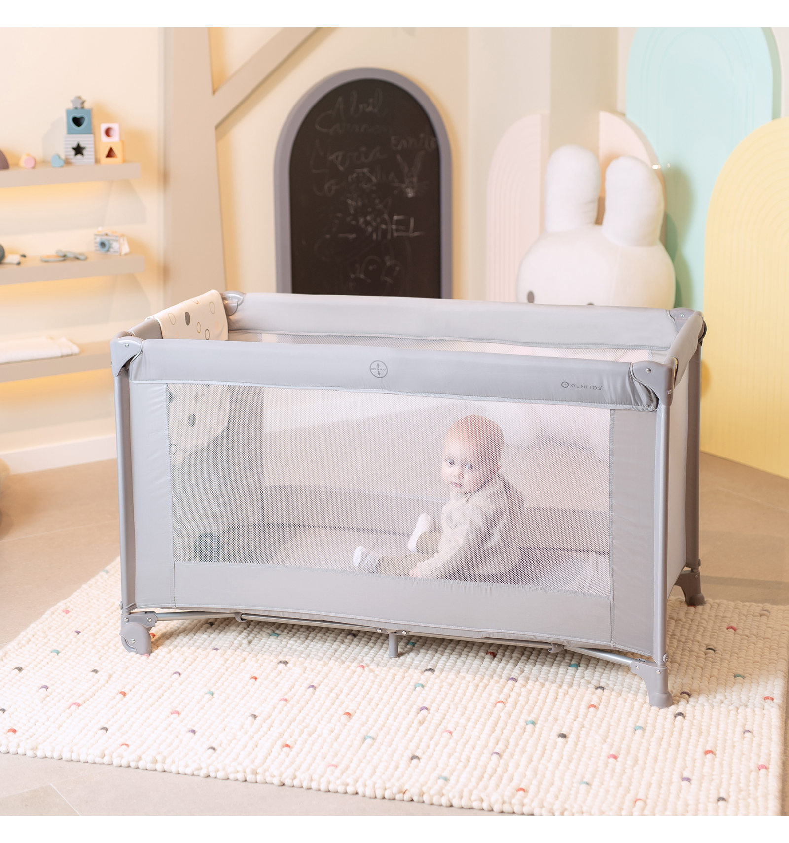 Equipada con ruedas y freno de seguridad, podrás moverla cómodamente de una habitación a otra. Las paredes laterales de red ofrecen una excelente ventilación y permiten que el bebé tenga contacto visual con el entorno, mientras tú lo supervisas fácilmente.