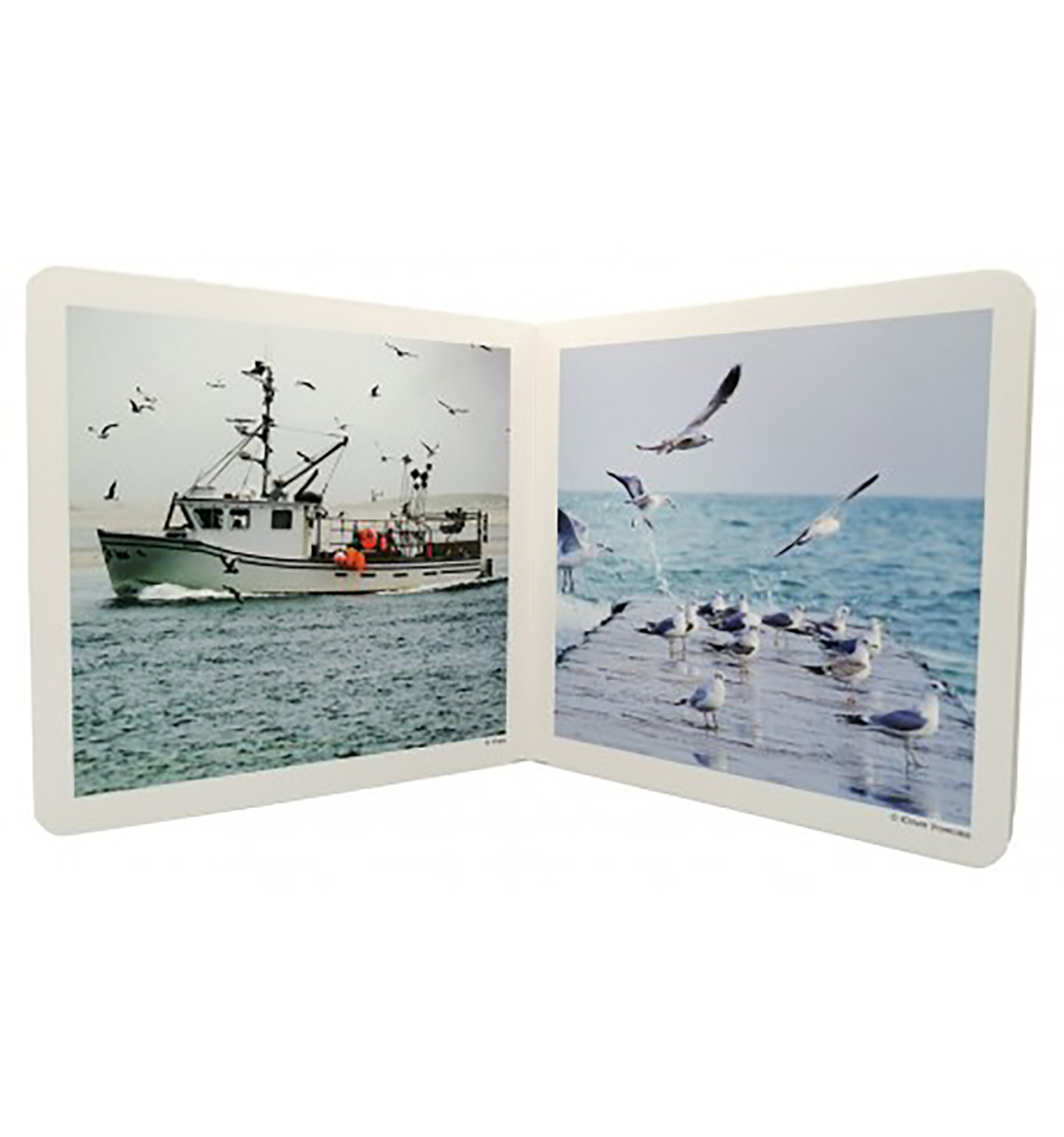 Libro de fotografías relacionadas con el mar. Con este libro tu peque descubrirà todo un mundo. Incluye un banco de peces, piragüismo, pescador, faro, embarcación, gaviotas, playa, submarinismo, coral y olas.