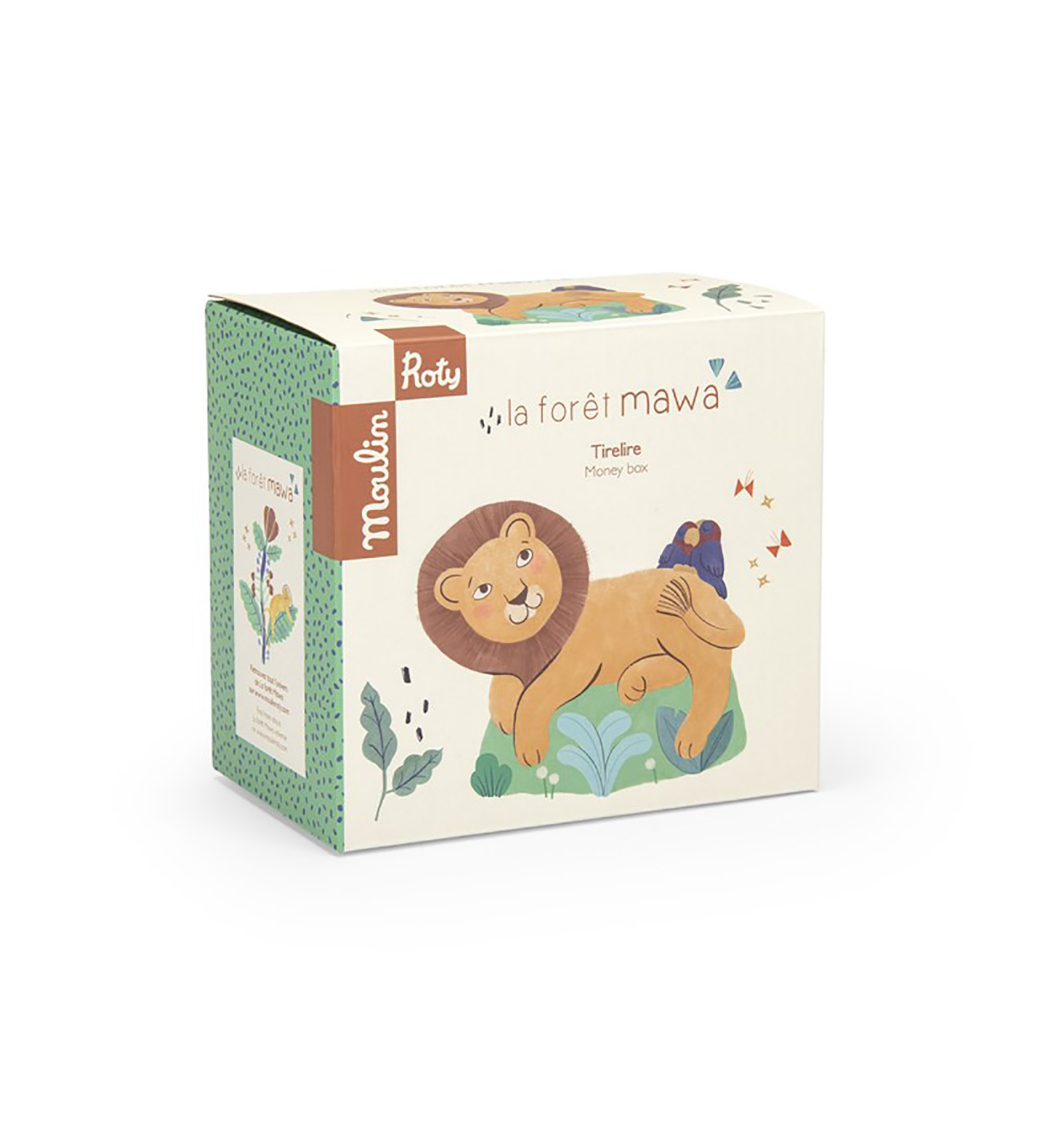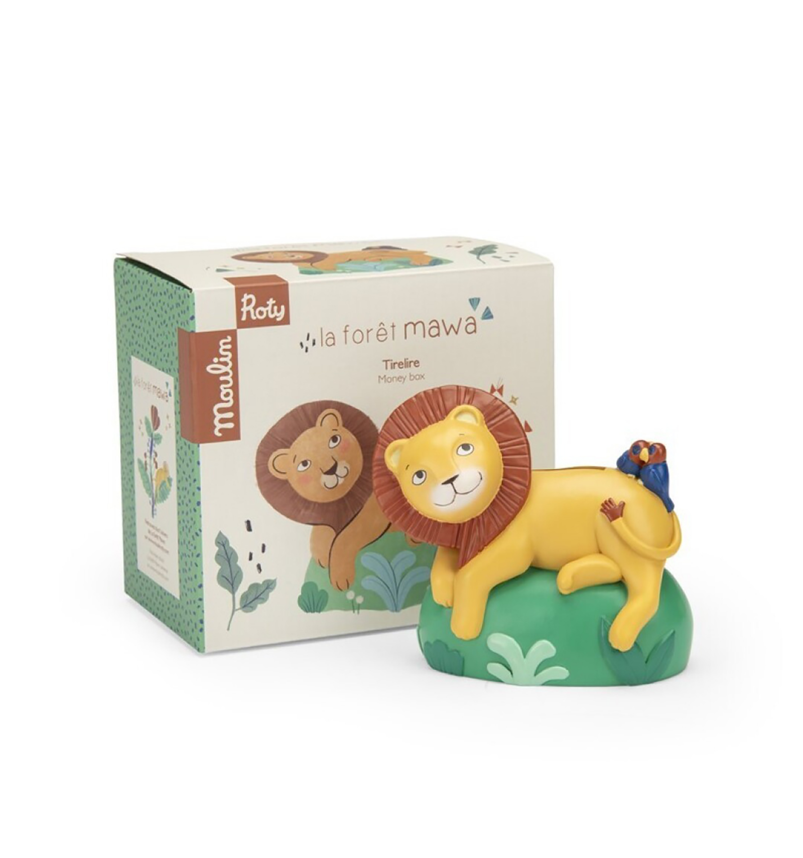La hucha león Forêt Mawa de Moulin Roty es perfecta para combinar aprendizaje, decoración y diversión.