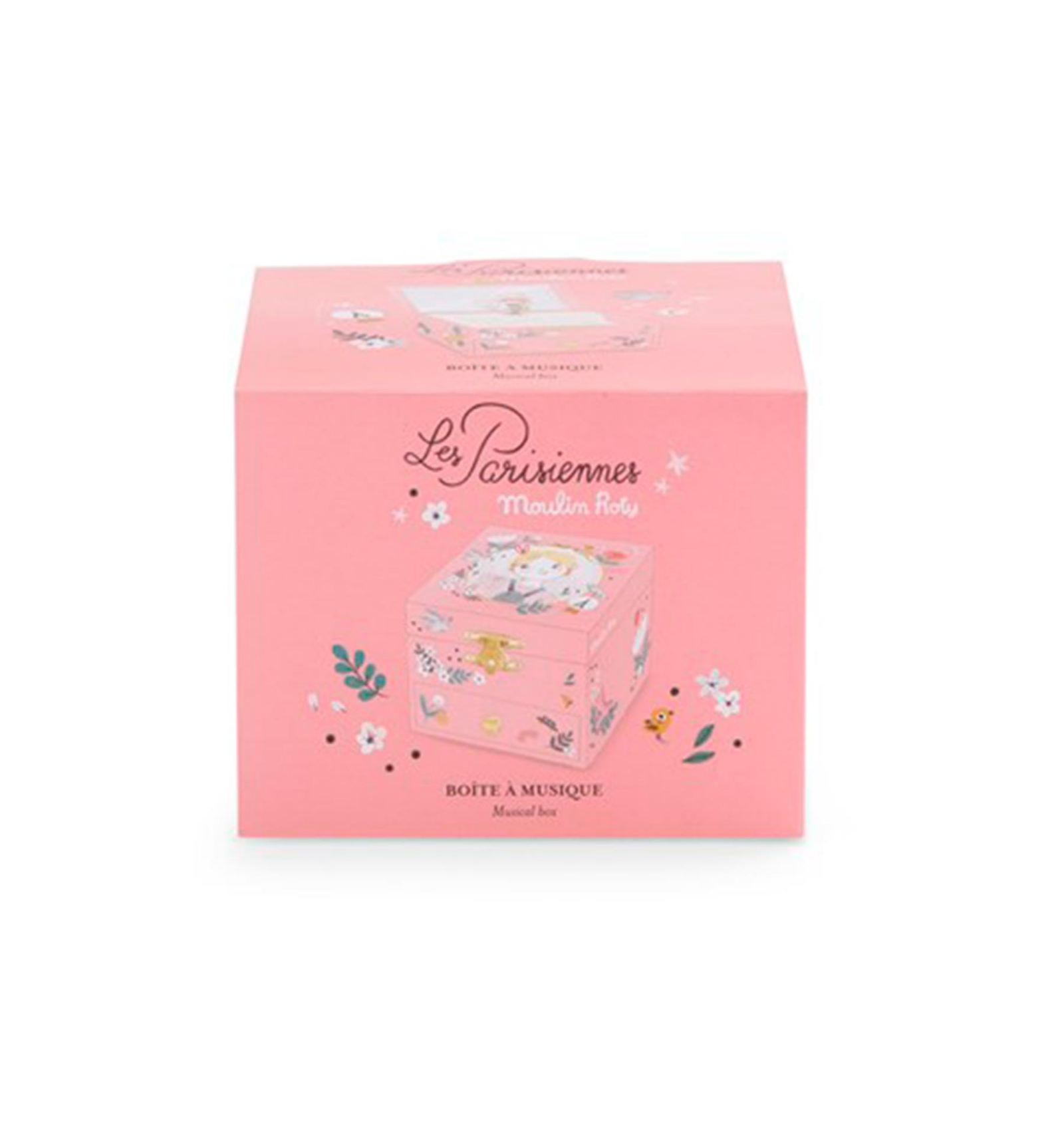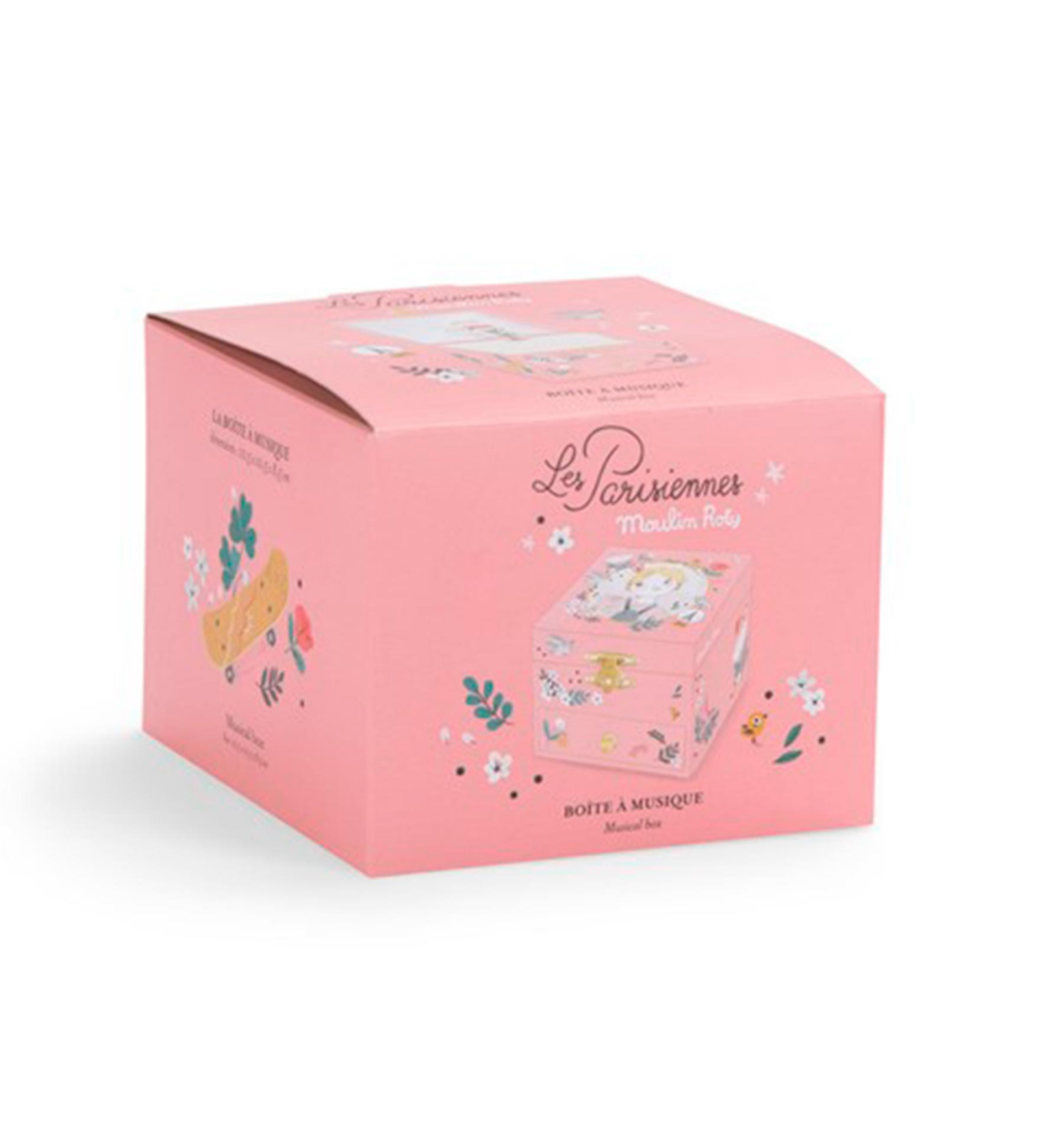 La caja de música "Les Parisiennes", ilustrada por Lucille Michieli, es un encantador tesoro para los más pequeños. Al abrirla, la intrépida Églantine, con su patineta bajo el brazo, gira delicadamente sobre los tejados de París al ritmo de la melodía. Este diseño único combina belleza y funcionalidad con un compartimento para guardar joyas y pequeños secretos.