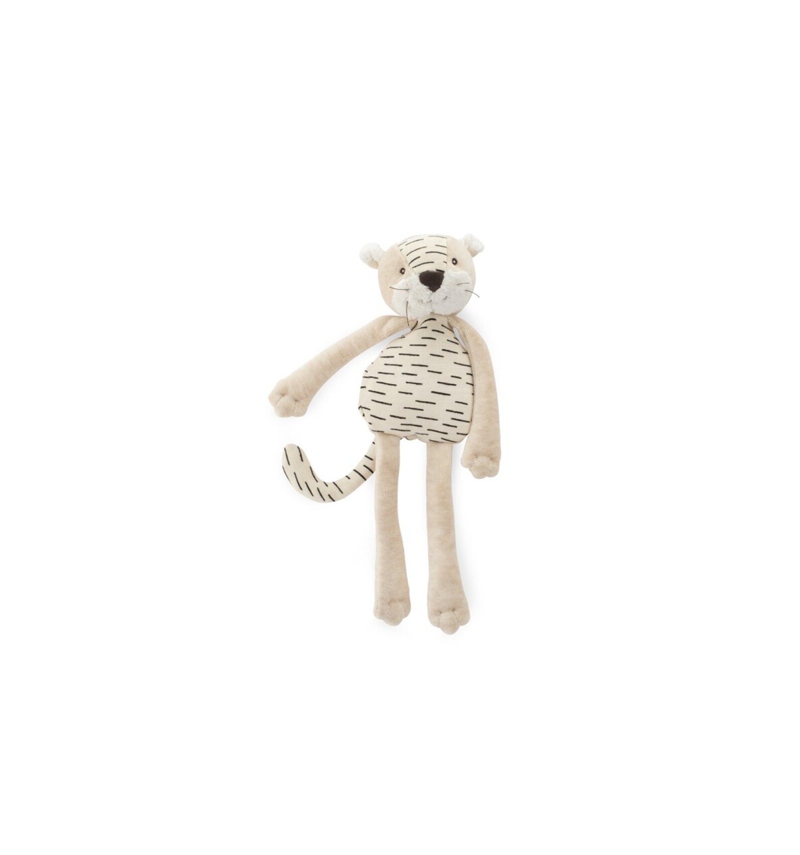 El doudou tigre Baboo está diseñado para adaptarse a las manos pequeñas, siendo ligero y fácil de sujetar.