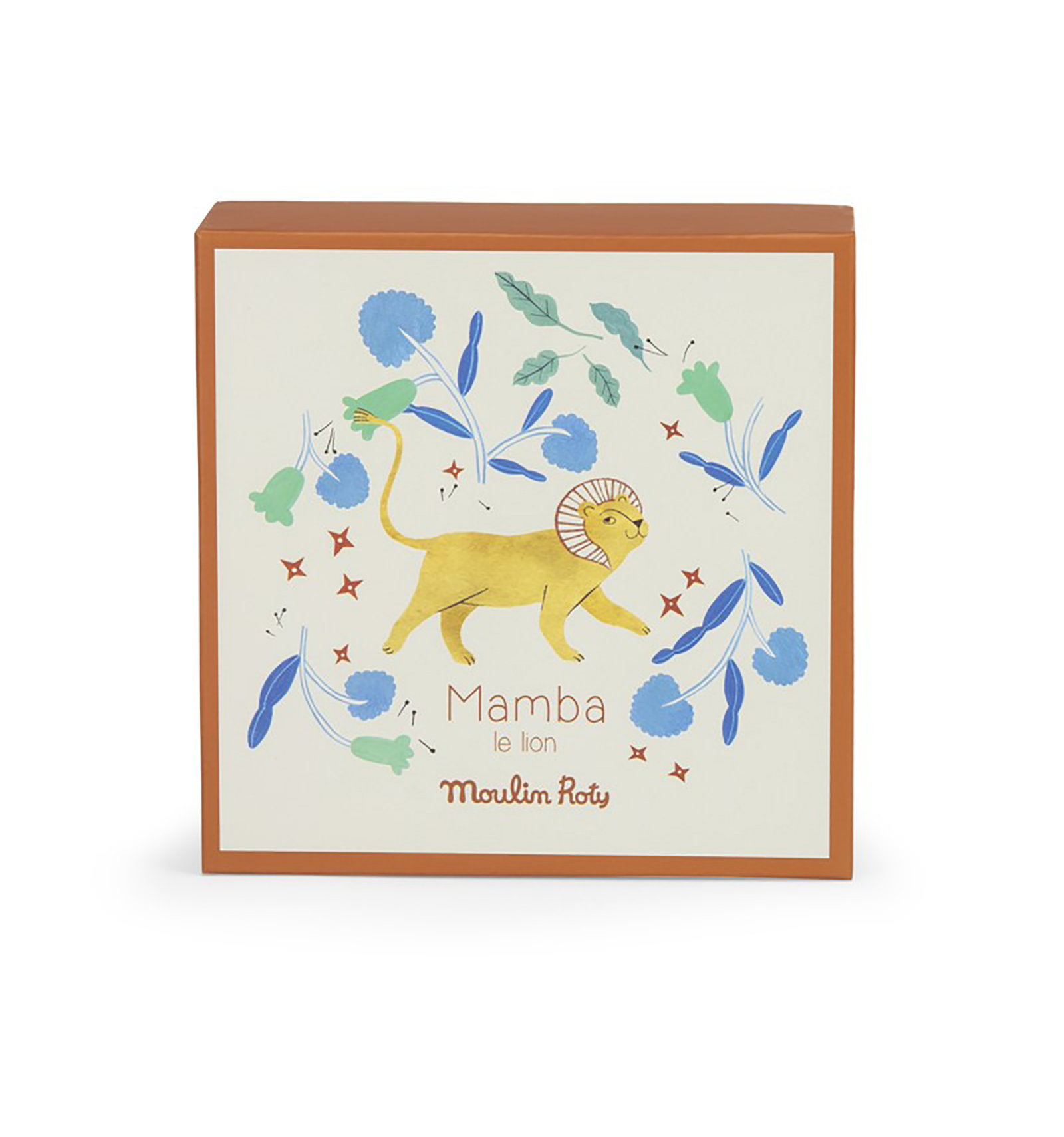 El doudou portachupete león Mamba de Moulin Roty es suave y práctico. Ideal para mantener el chupete siempre a mano mientras acompaña al bebé con ternura.
