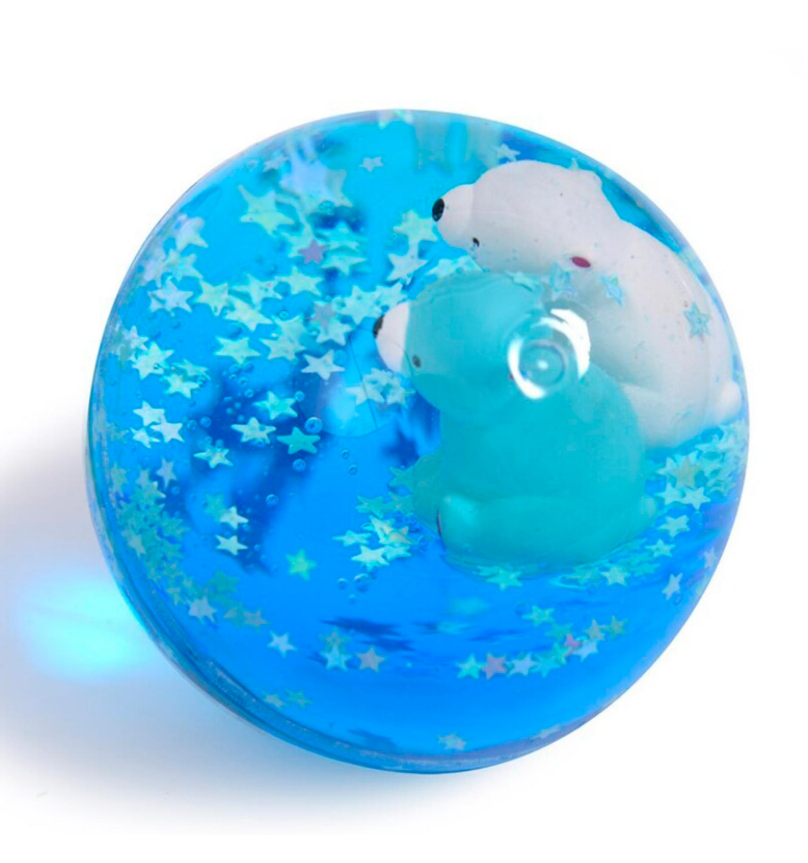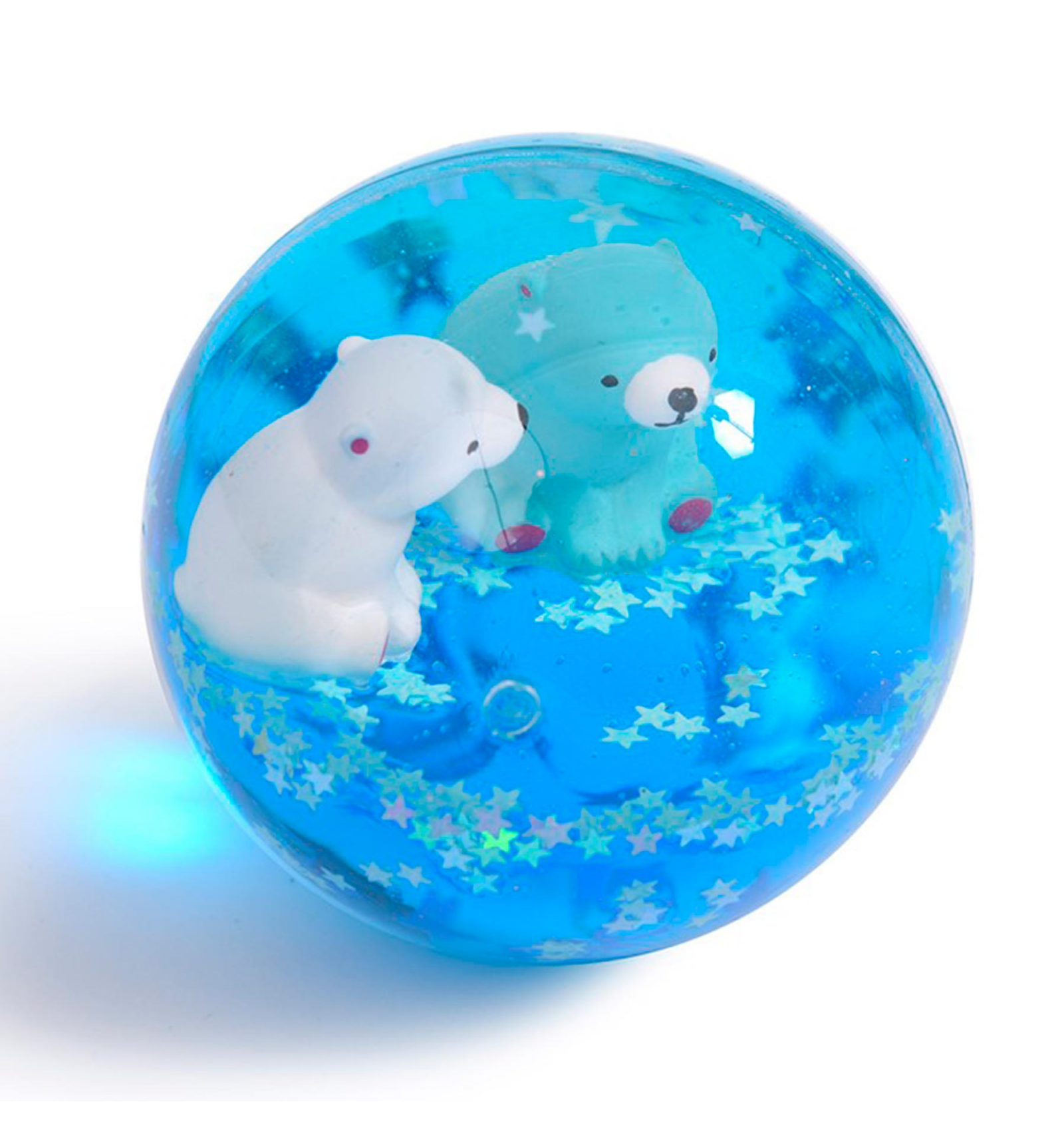 La típica pelota súper saltarina pero con bonitos animales flotantes dentro. A partir de los 3 años. Medidas: 5.5 cm Ø.