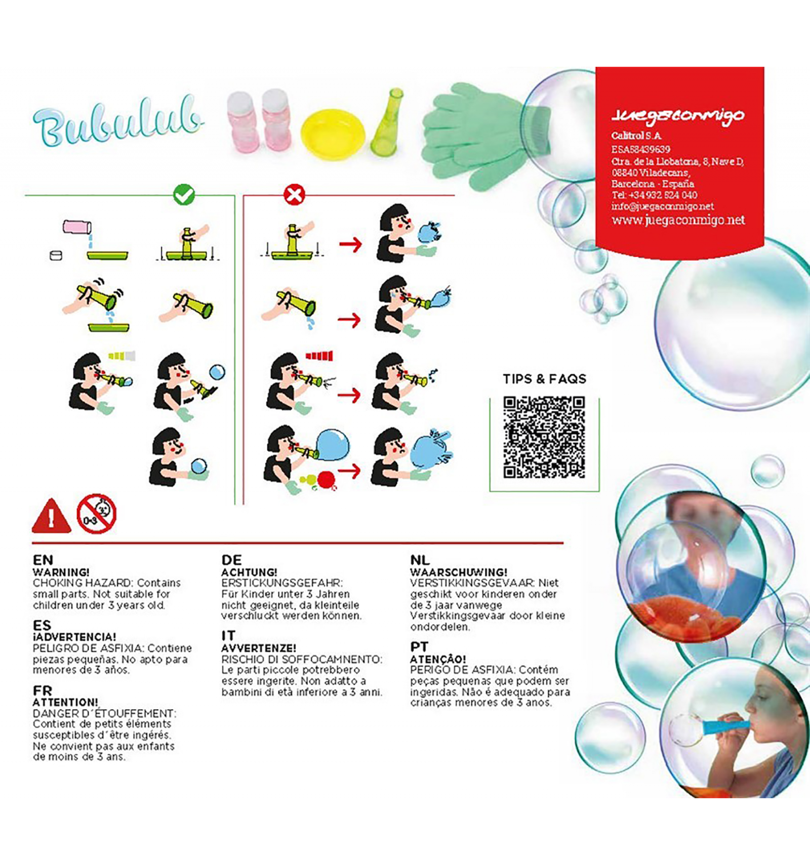 - un utensilio para soplar las burbujas.