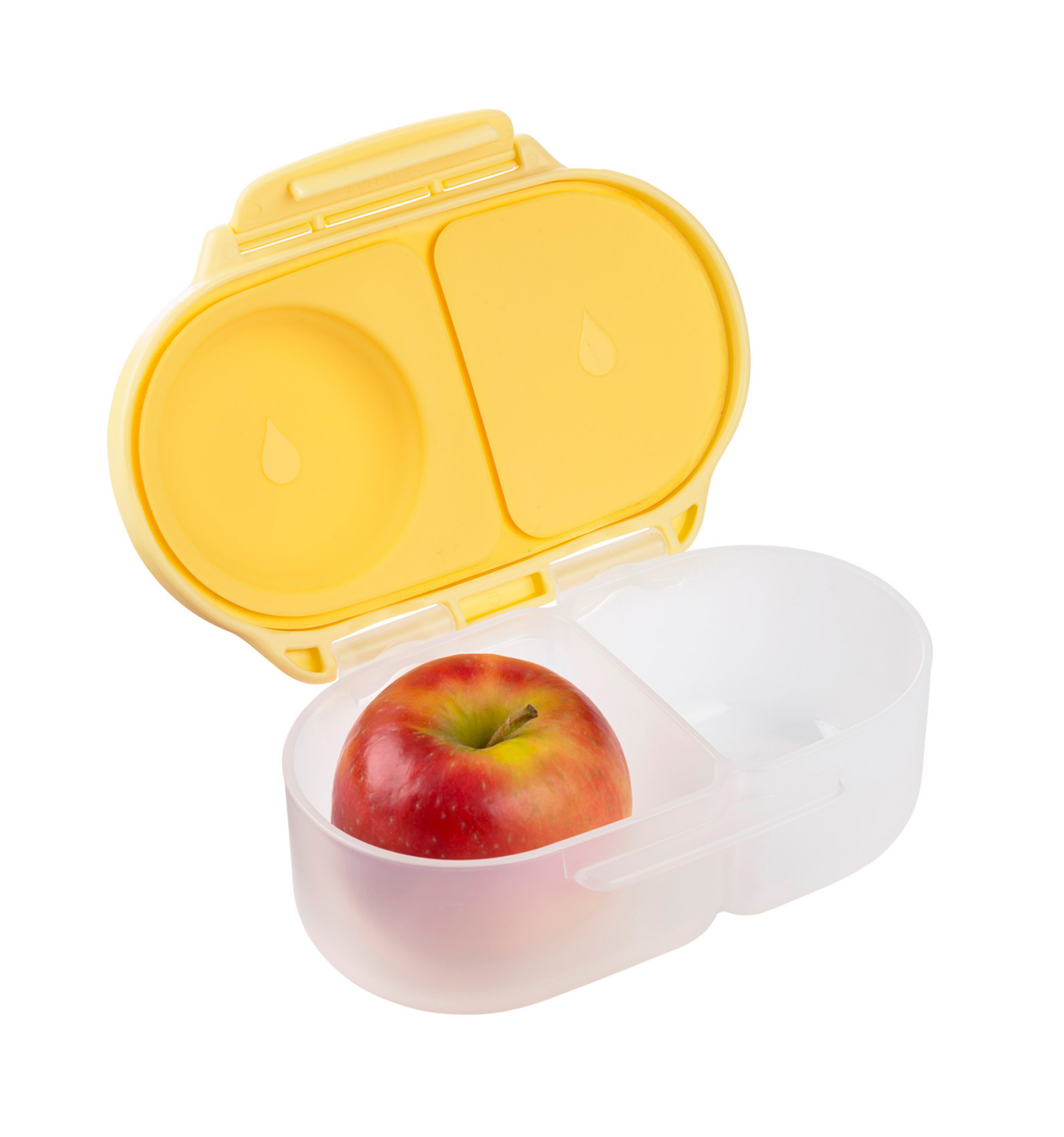 Incluye además un compartimento exclusivo para fruta con almohadilla elástica, que permite transportar piezas enteras sin necesidad de cortarlas. Su diseño ergonómico, con asas y pinza de agarre grande, hace que sea muy fácil de abrir, fomentando la independencia de los más pequeños.