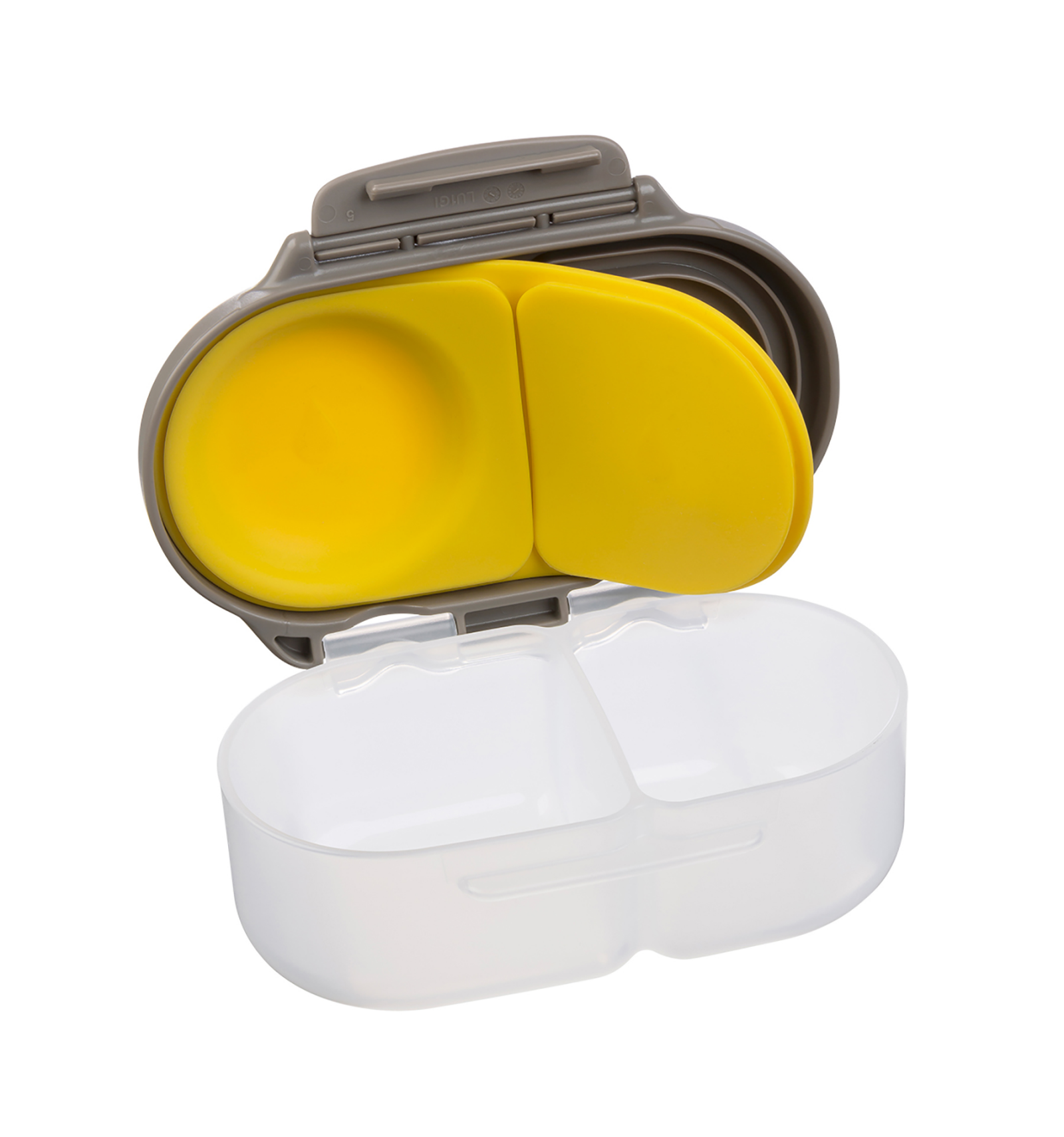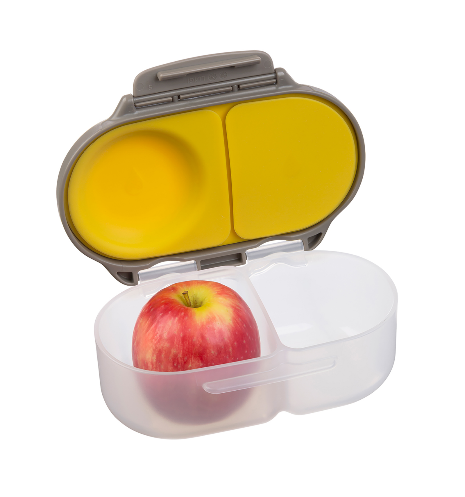 Incluye además un compartimento exclusivo para fruta con almohadilla elástica, que permite transportar piezas enteras sin necesidad de cortarlas. Su diseño ergonómico, con asas y pinza de agarre grande, hace que sea muy fácil de abrir, fomentando la independencia de los más pequeños.