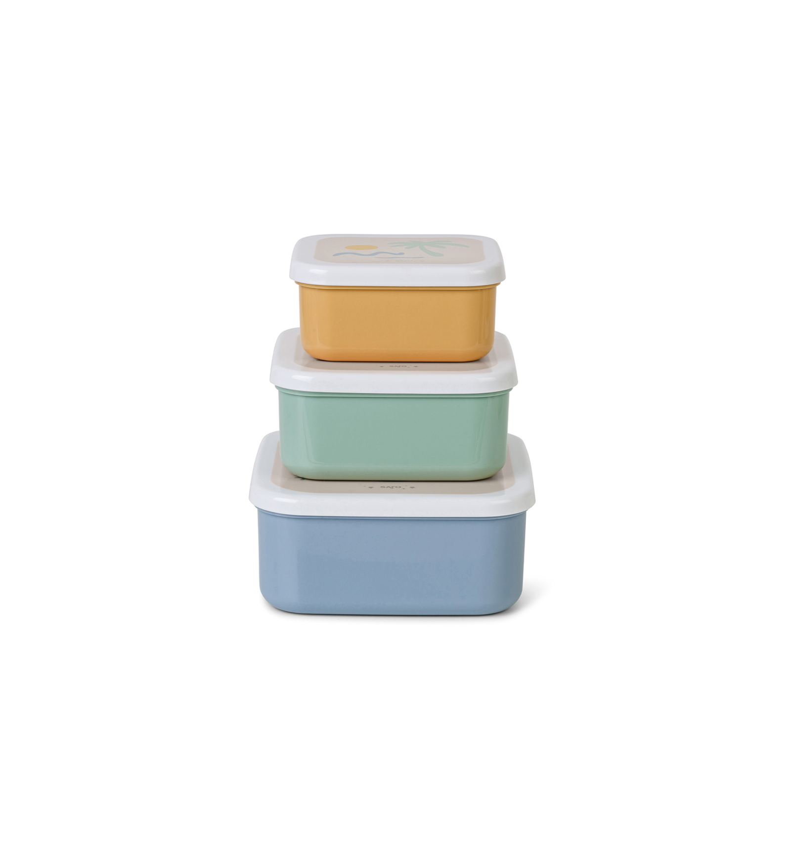 Set de 3 cajitas Saro prácticas y apilables. Ideales para llevar snacks o almuerzo al cole o al parque de forma cómoda.