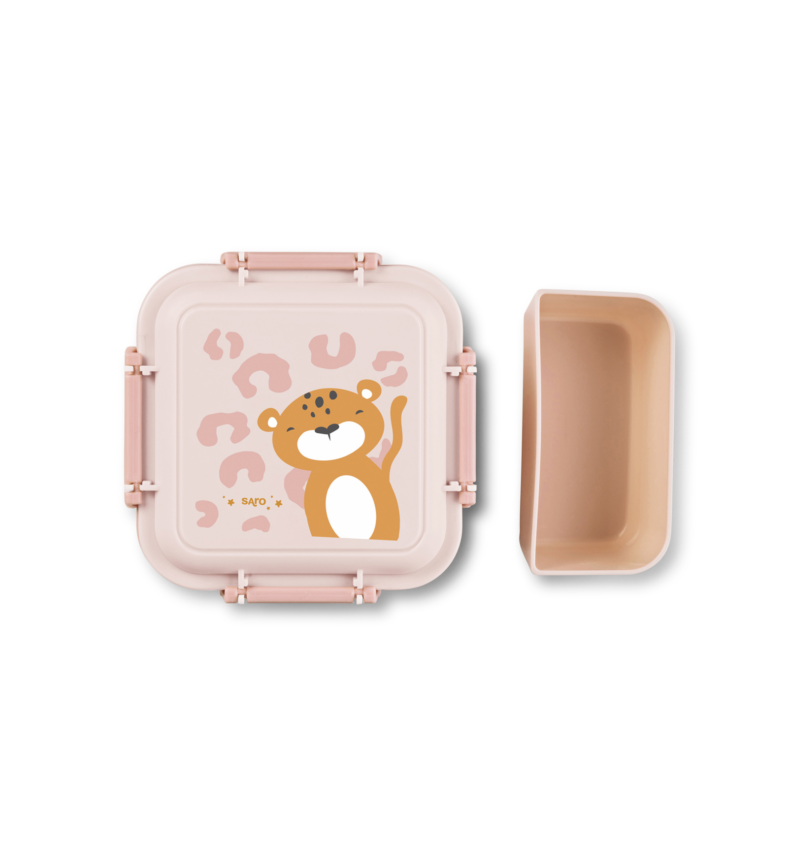 Cajita hermética Saro “Click & Go!” con separador interior. Práctica, segura y fácil de usar, ideal para snacks y meriendas fuera de casa.