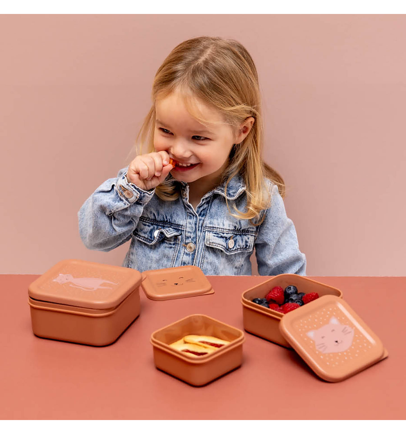 Set de 3 fiambreras infantiles con divertidos animales. Fáciles de abrir, encajan unas dentro de otras y son perfectas para llevar la merienda al cole, de paseo o tenerla lista en casa. ¡Aptas para lavavajillas y diseñadas para manos pequeñas!