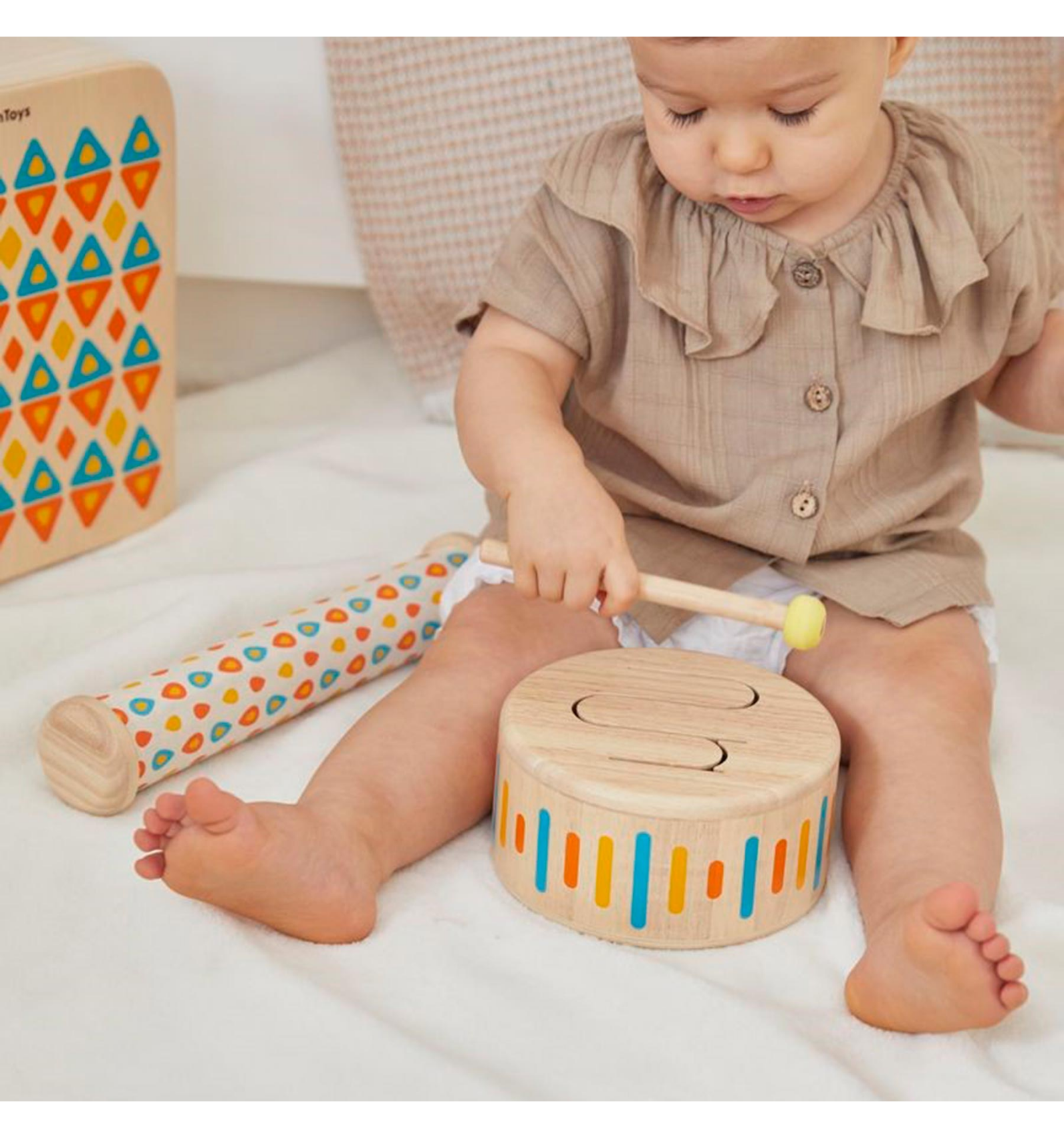 Despierta el ritmo musical de los más pequeños con este tambor de madera maciza.