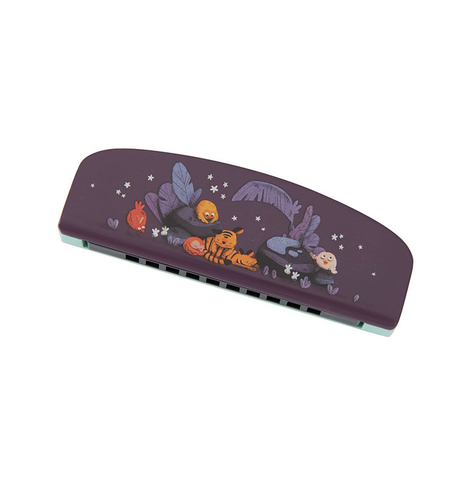 Armónica de madera pintada e ilustrada en la poética temática de la colección "La Jungla" de Moulin Roty.