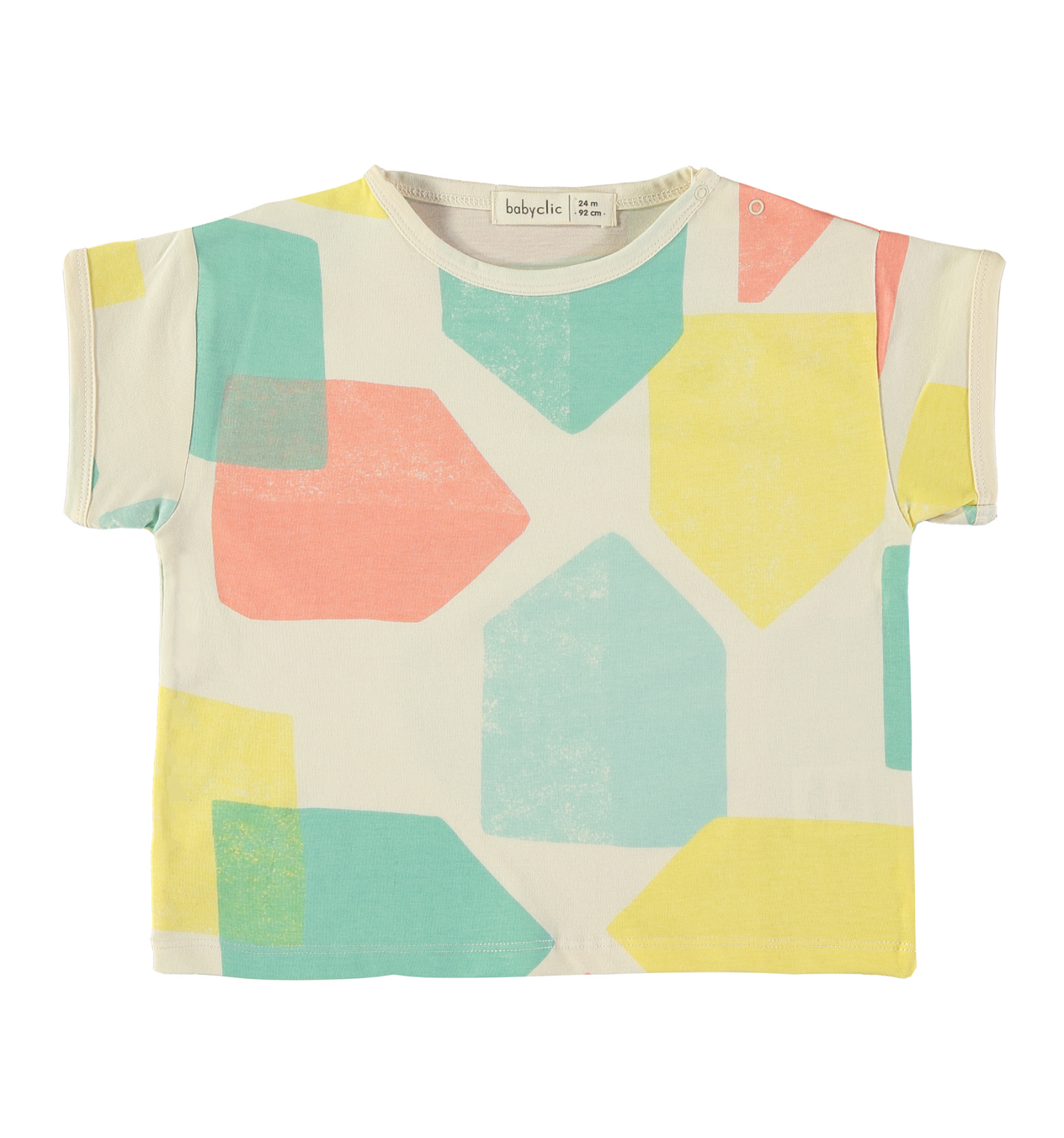 Camiseta de manga corta Babyclic, confeccionada en punto liso 100% algodón orgánico. Suave, transpirable y perfecta para la piel del bebé. Con apertura en el hombro con broches a presión y detalles de vivo en cuello, laterales y bajos.