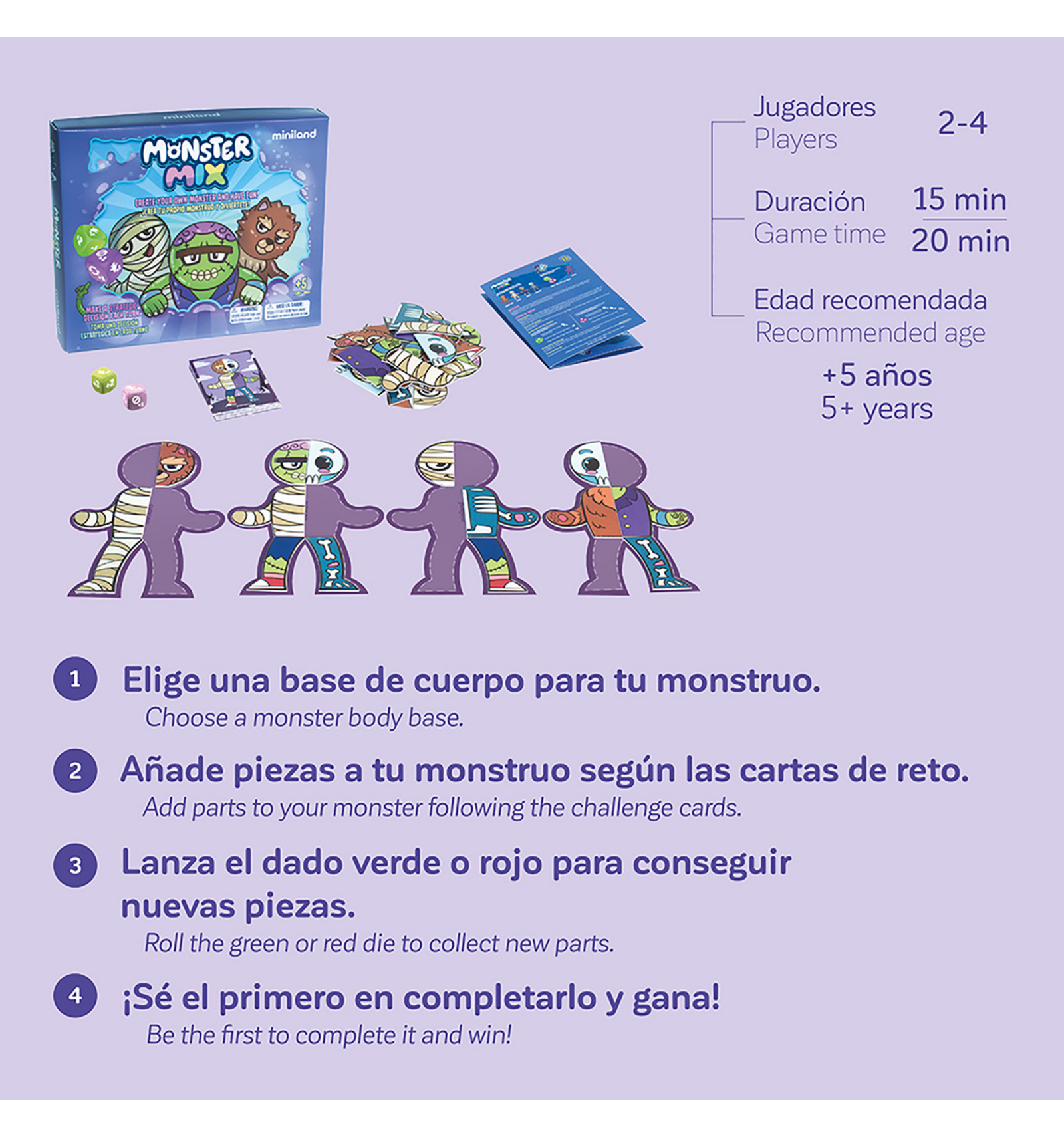 Lanza los dados, reúne las diferentes partes del cuerpo y compite por ser el primero en completar tu monstruo. Una dinámica sencilla y emocionante que convierte cada partida en un reto lleno de risas.