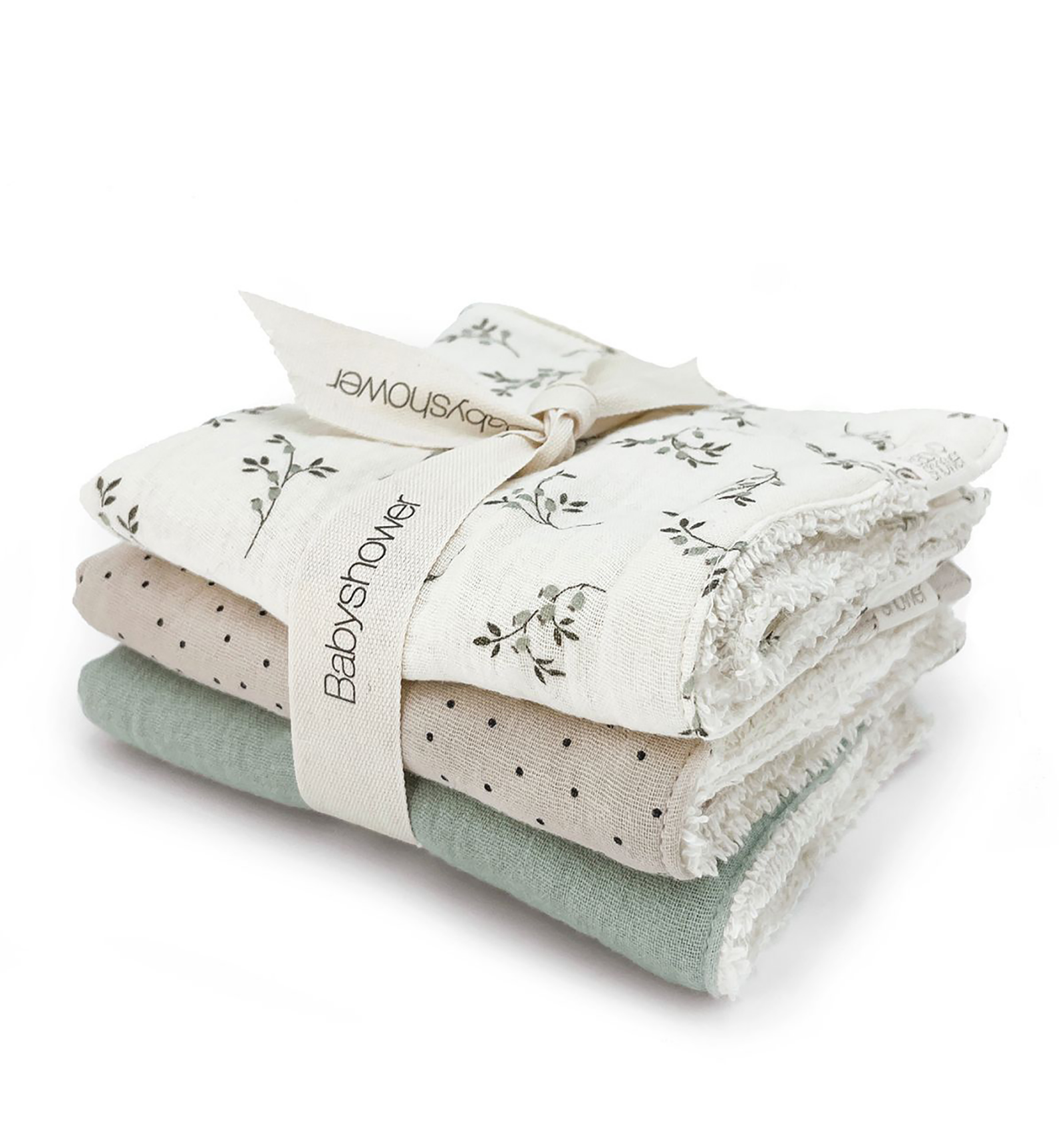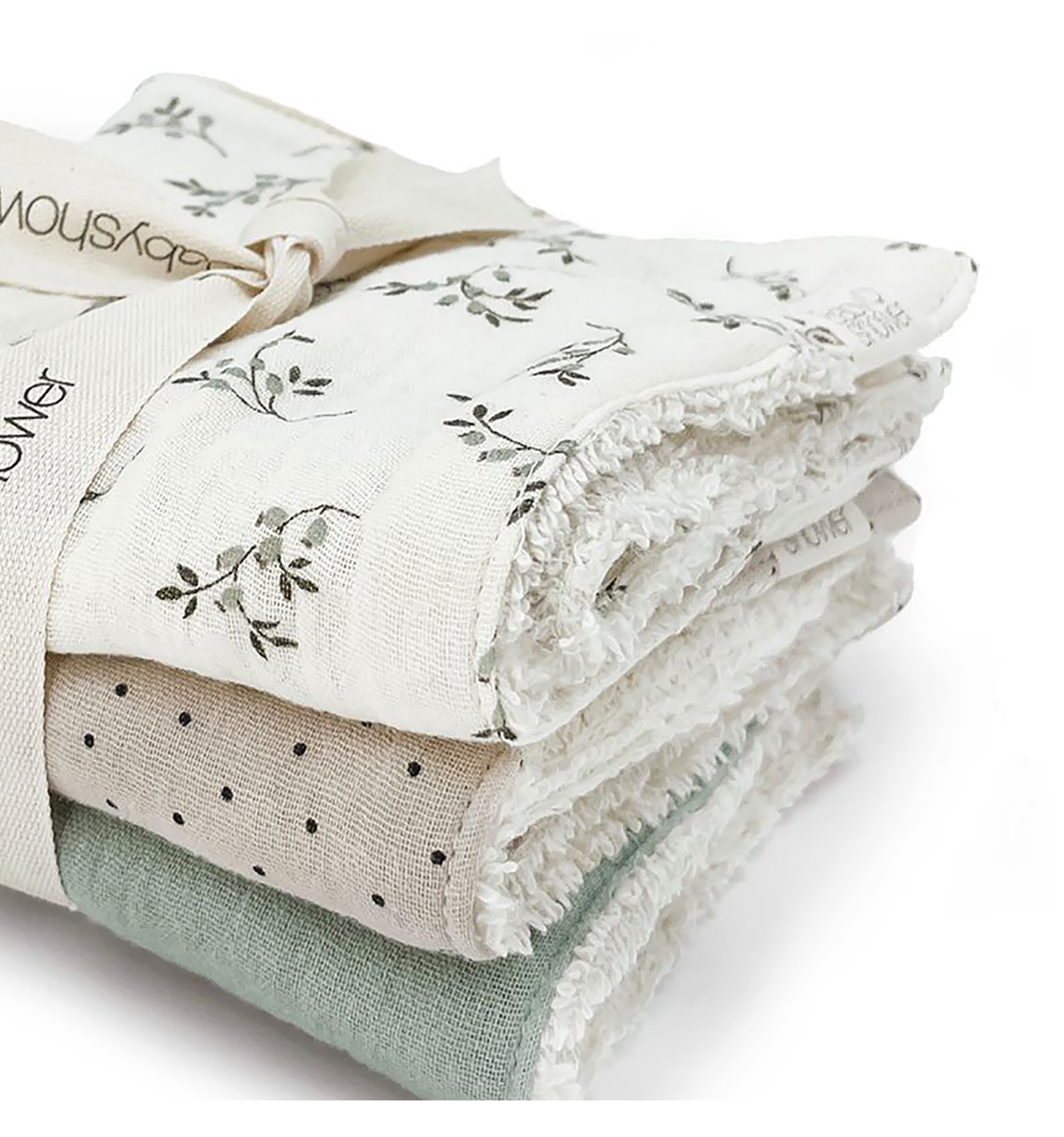 Pack con 3 toallitas de tela multiusos en elegantes estampados. Puedes usarlas para mantener limpio el cojín de la minicuna, limpiar las babitas del bebé, tener un apoyo limpio para su cabecita, o durante el eructo. Elaboradas con un lado en rizo en algodón 100%.