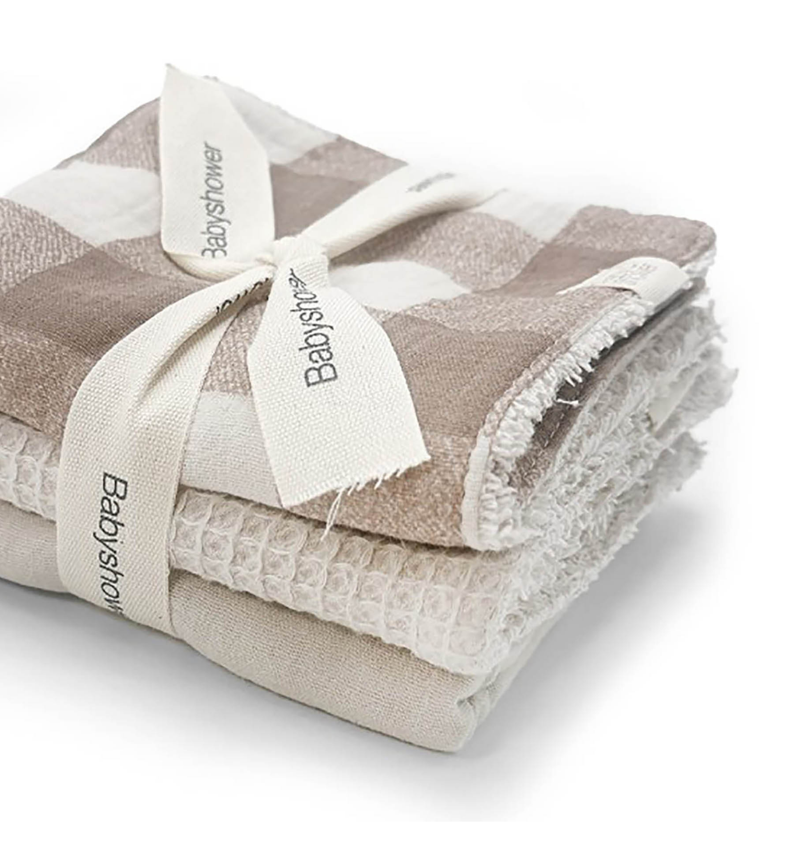 Pack con 3 toallitas de tela multiusos en elegantes estampados. Puedes usarlas para mantener limpio el cojín de la minicuna, limpiar las babitas del bebé, tener un apoyo limpio para su cabecita, o durante el eructo. Elaboradas con un lado en rizo en algodón 100%.