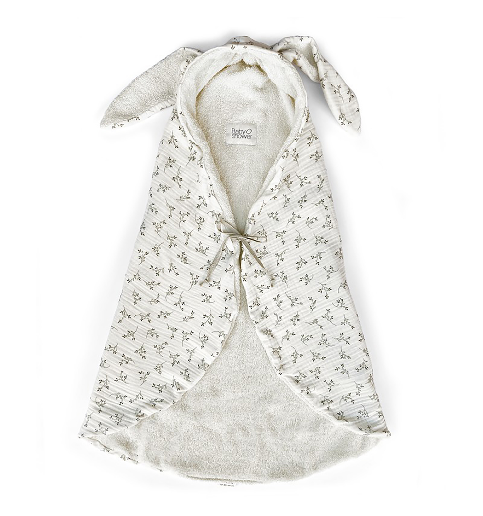 Arrullo con capucha y orejitas de conejito, para una multitud de usos: tapar al bebé durante los primeros días, arrullarlo mientras le das el pecho o biberón...