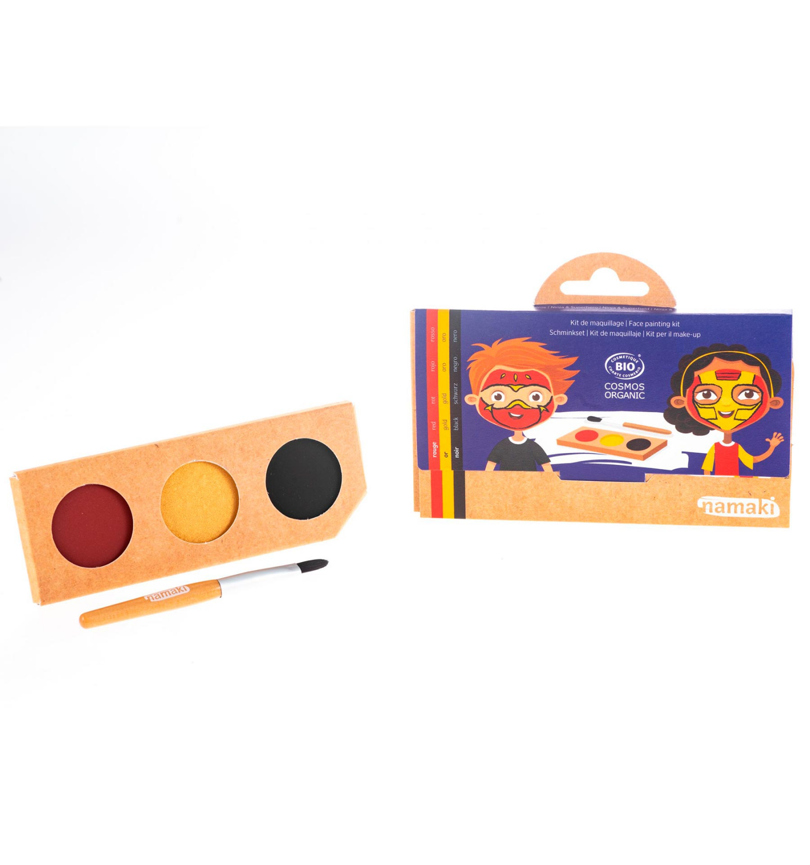 Los maquillajes de Namaki son maquillajes Bio ecológicos que respetan las pieles de todos nuestros pequeños y en especial las que son más frágiles. Son maquillajes con materias primas totalmente naturales y al agua, certificados con el sello BIO y testados dermatológicamente. Así, respetan nuestra piel y nuestro Planeta.
