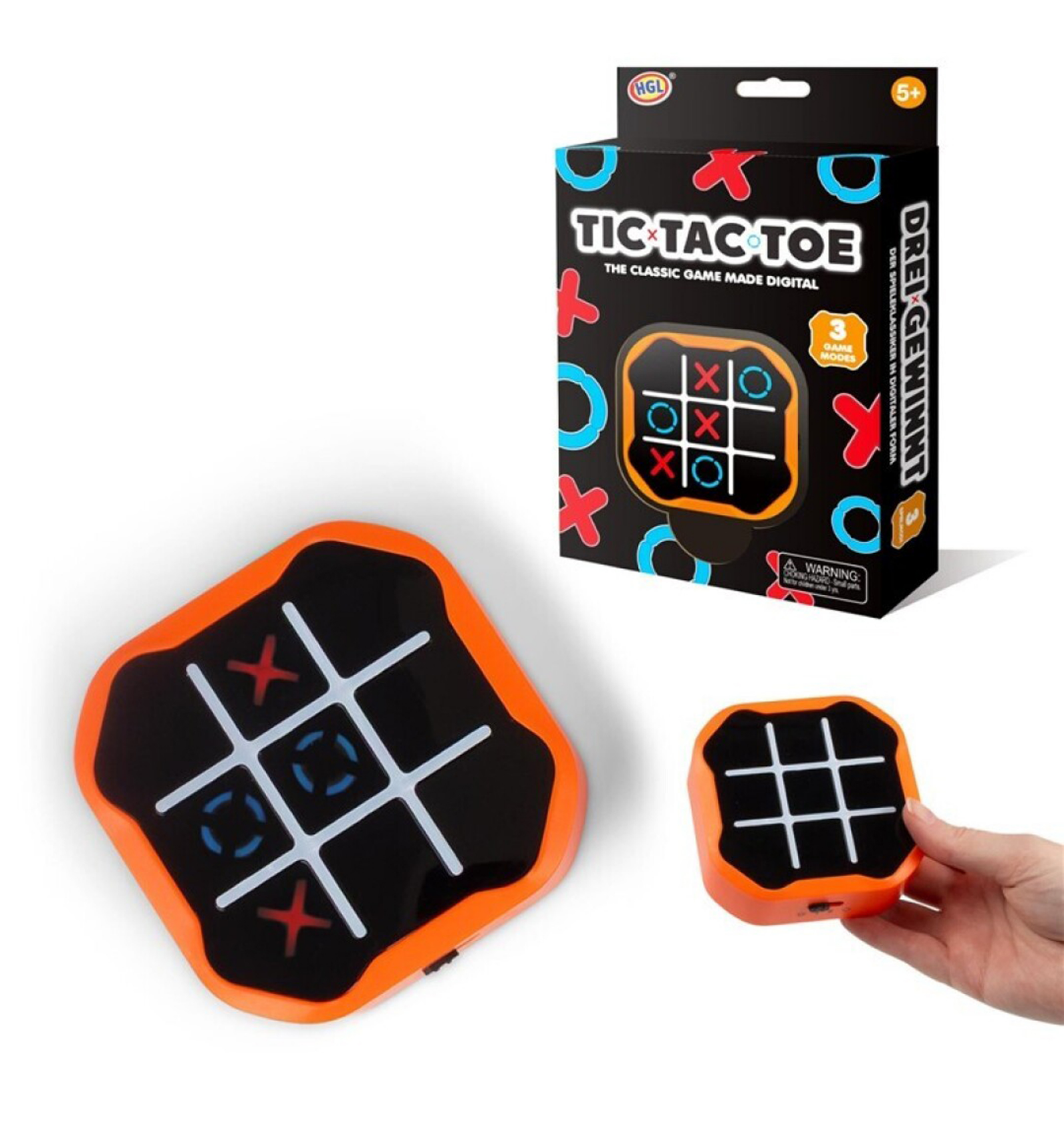 El 3 en raya Tic-Tac-Toe naranja es un juego electrónico compacto que combina el clásico tres en raya con modos interactivos para estimular la lógica y la memoria.