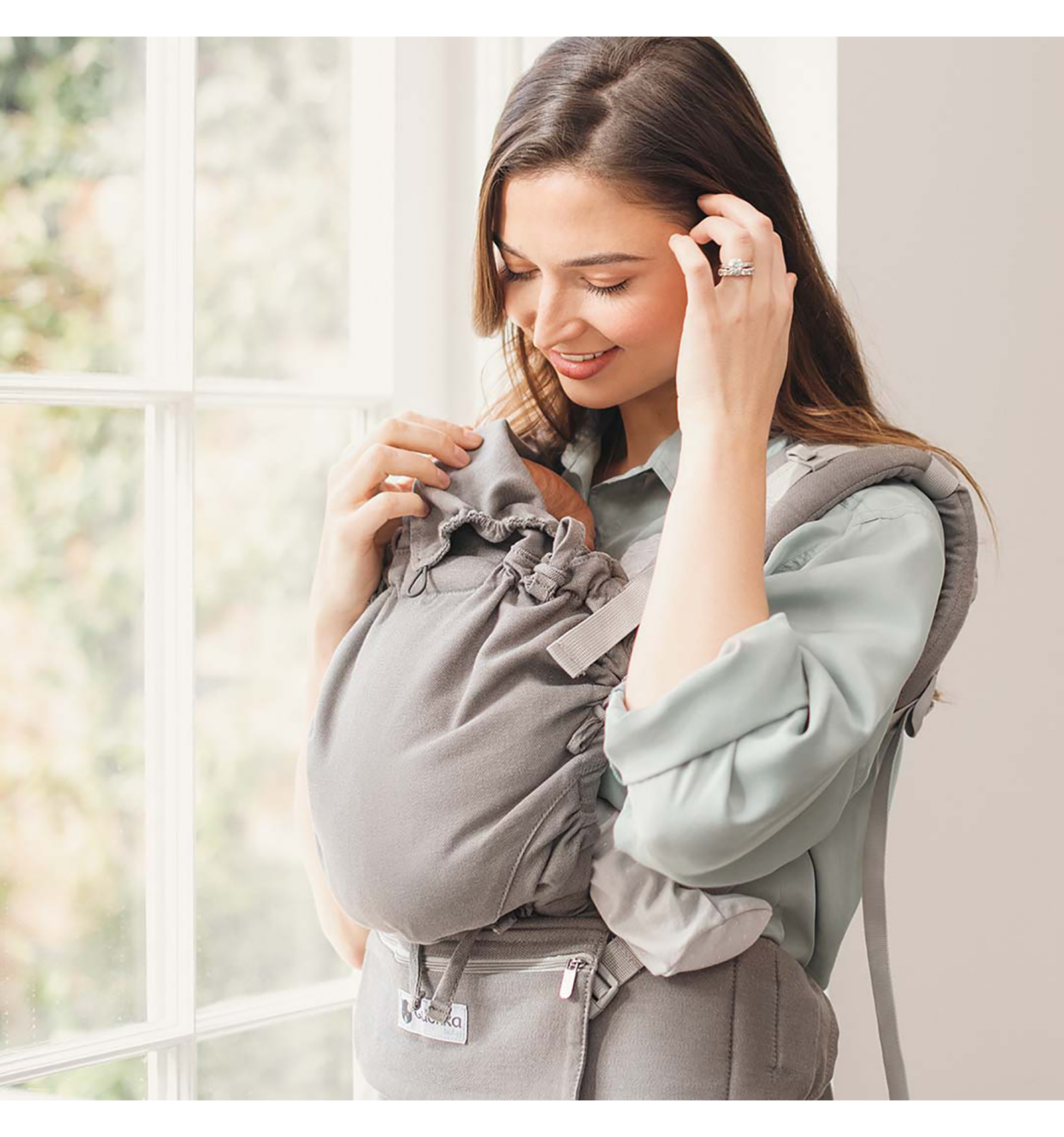 • Cinturón ergonómico con soporte flexible, incluso para porteadoras con cesárea