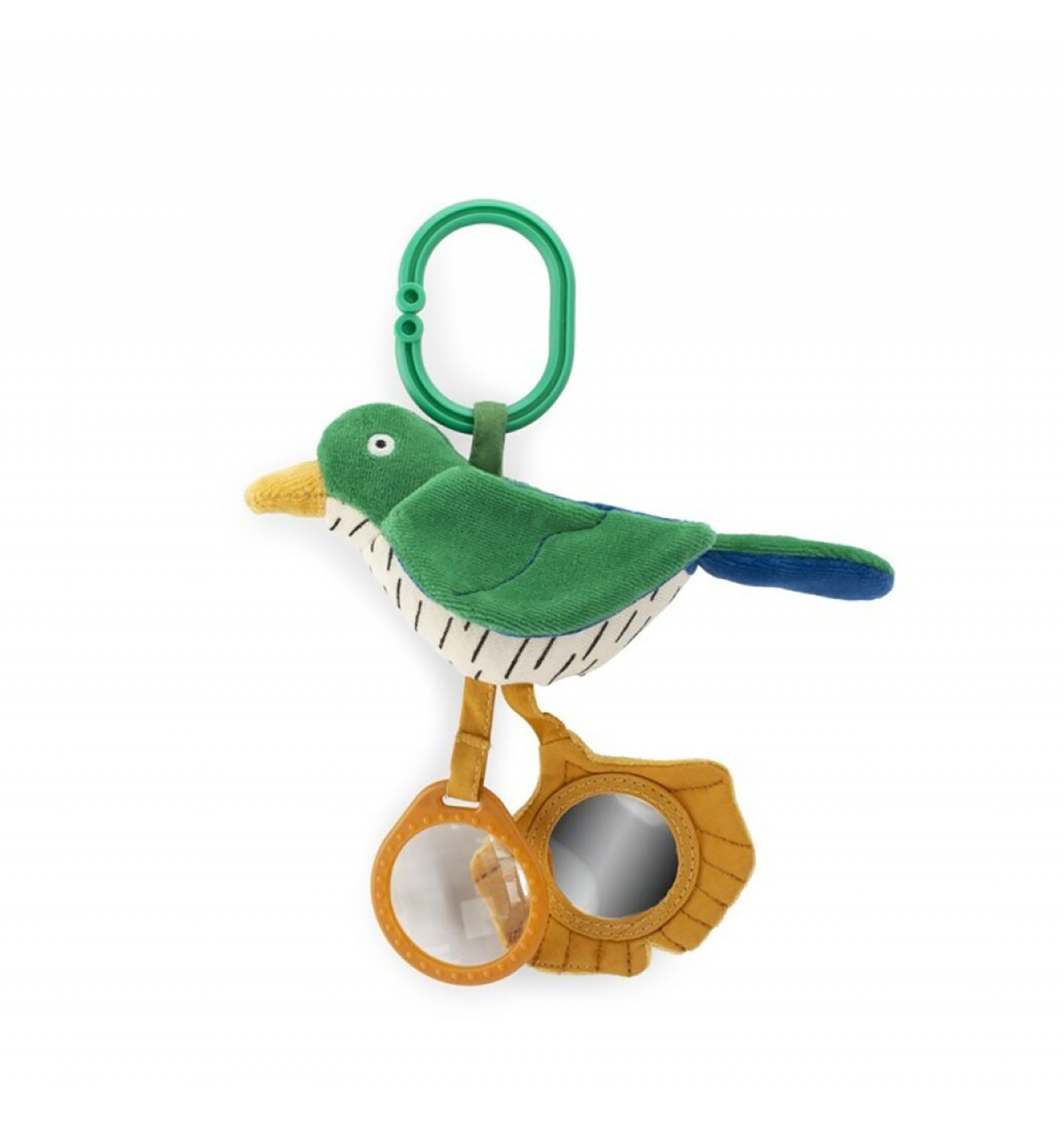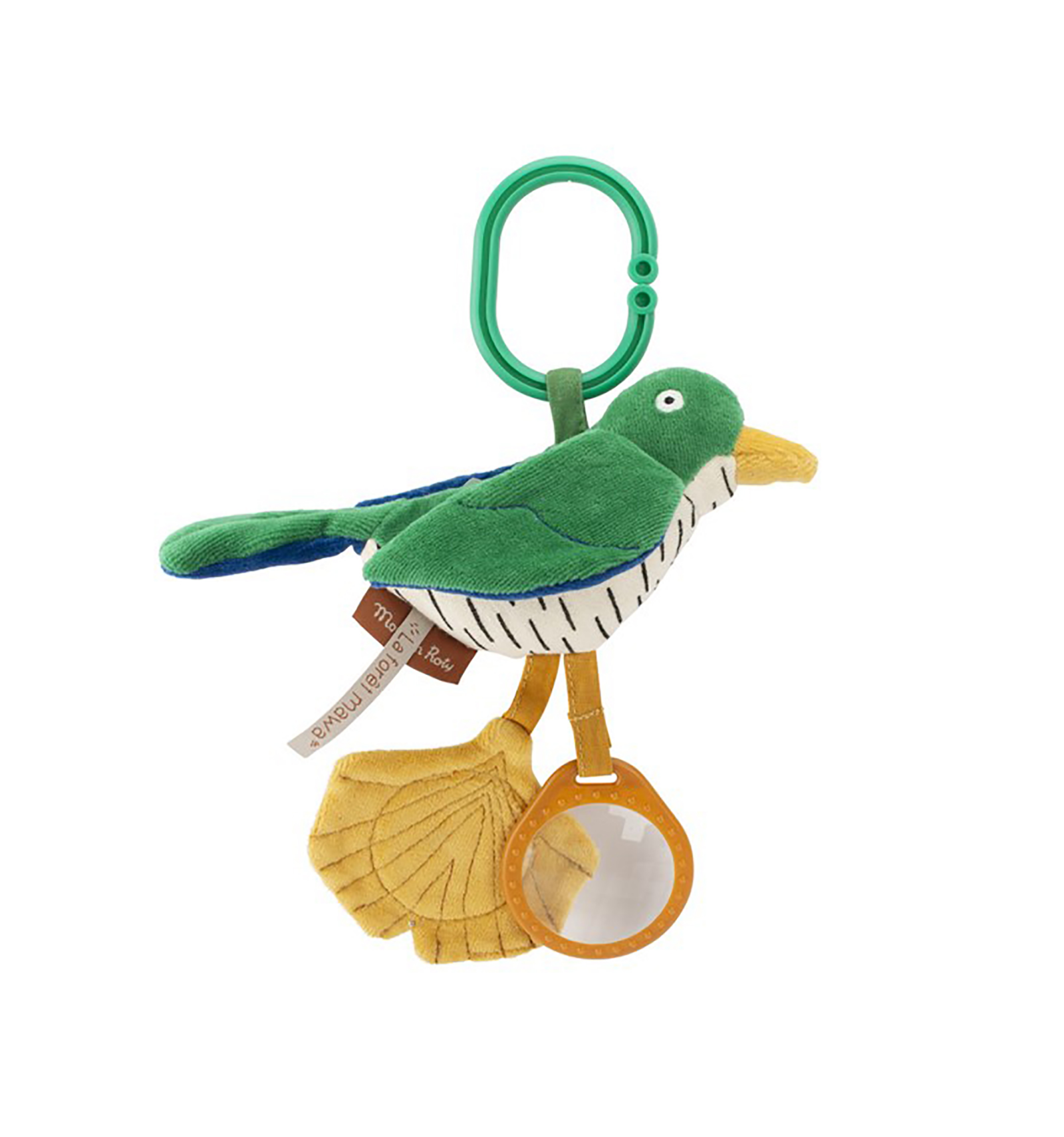 El cuco Moulin Roty está fabricado con materiales blandos y agradables al tacto, adaptados a las manos pequeñas.