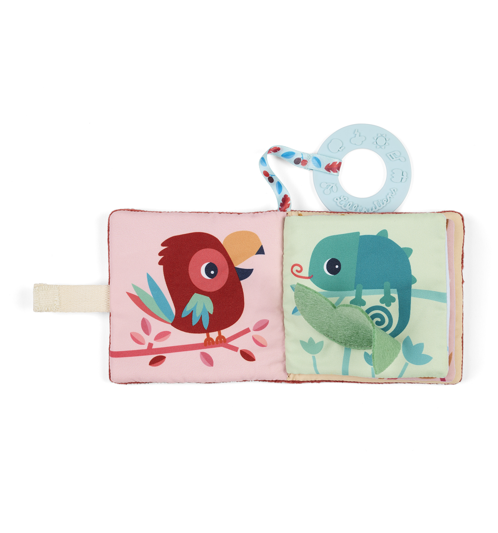 El libro incorpora un práctico anillo de dentición que ayuda a calmar las encías durante la etapa de dentición.