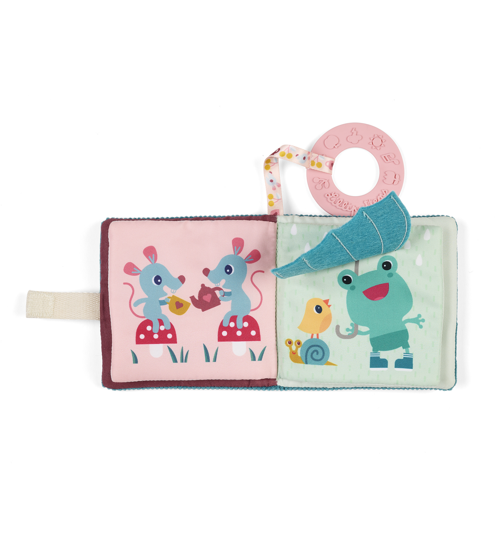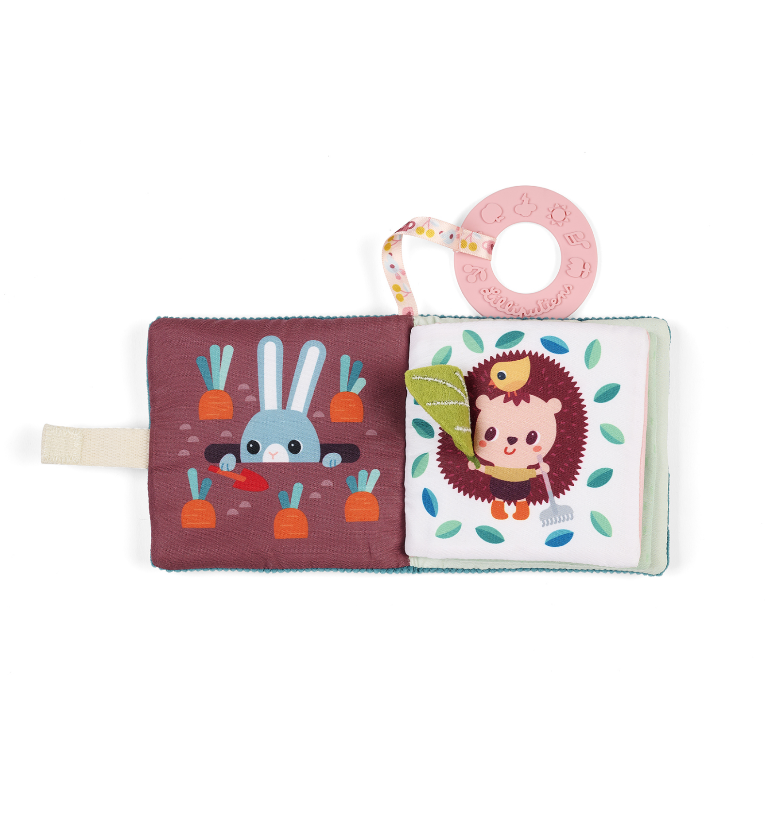 El libro incorpora un práctico anillo de dentición que ayuda a calmar las encías durante la etapa de dentición.