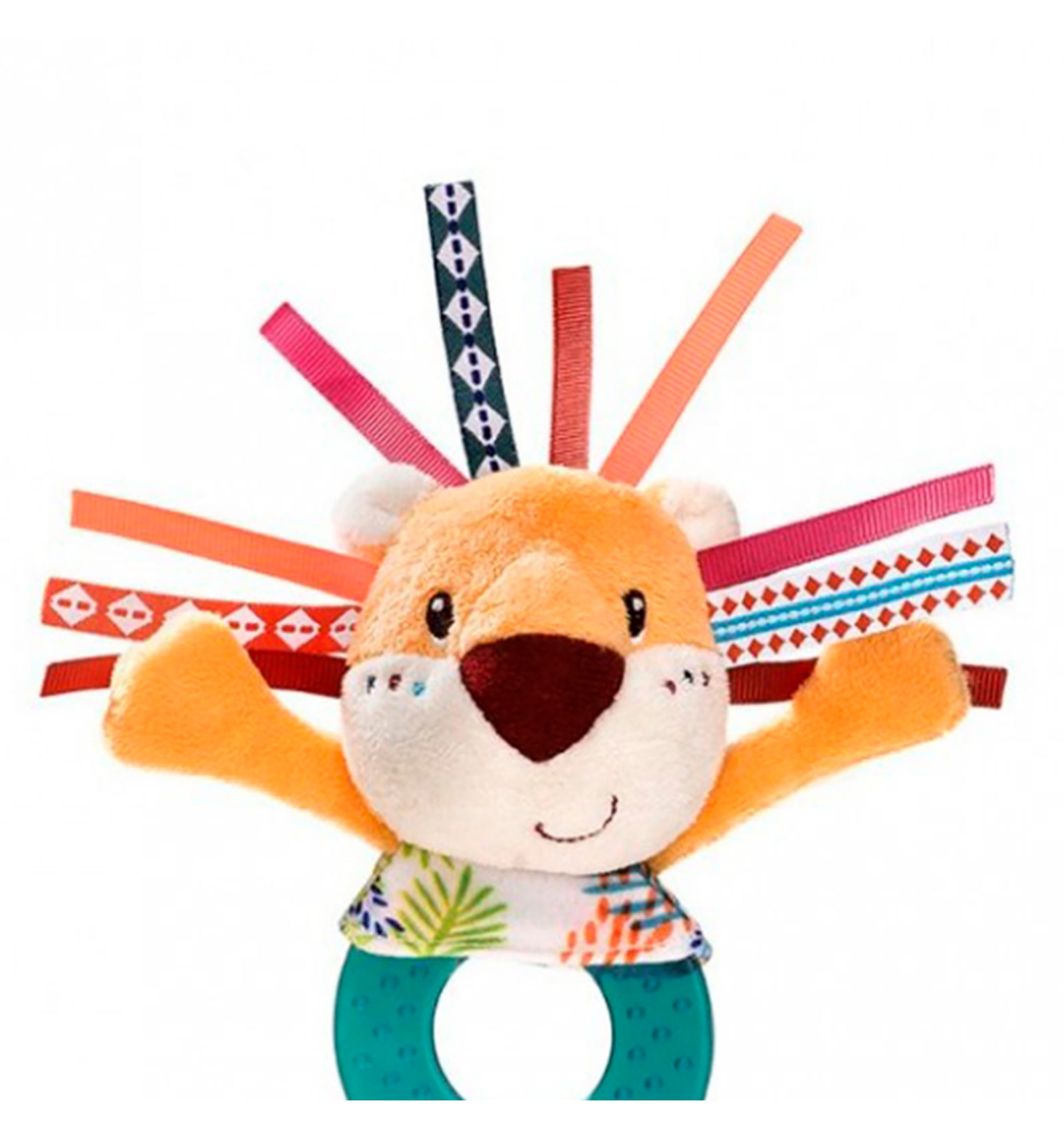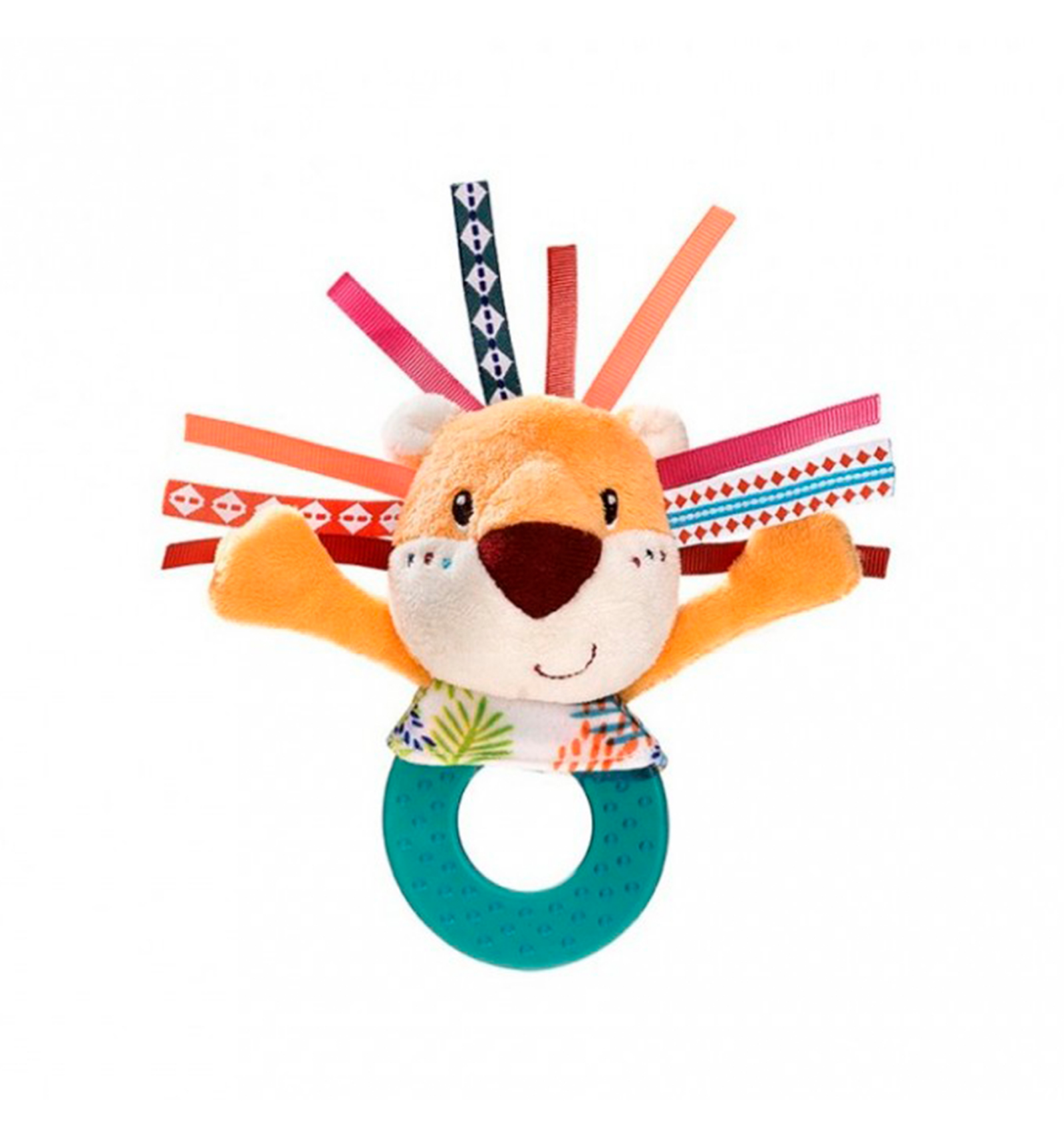 ¡El fiero león Jack se deja morder para aliviar a tu bebé! Entra en el mundo de Lilliputiens y sus divertidos personajes con este sonajero mordedor suave y reconfortante de atractivo diseño. Jack emite sutiles sonidos de cascabel y papel. A partir de los 3 meses.