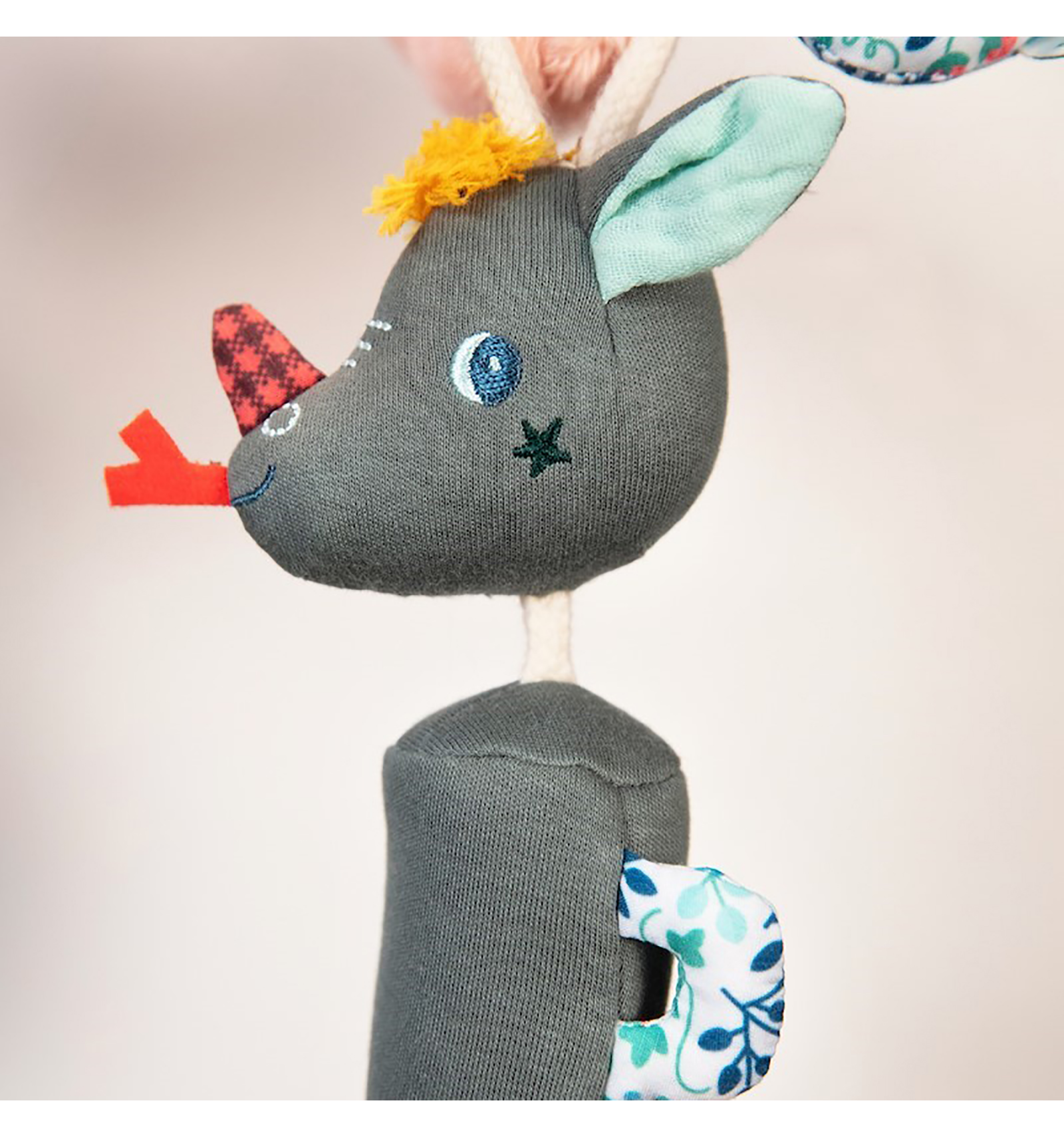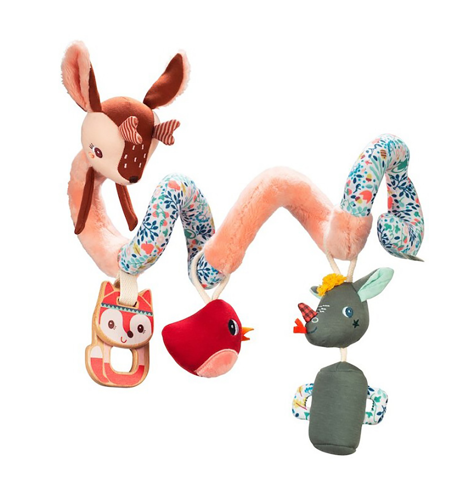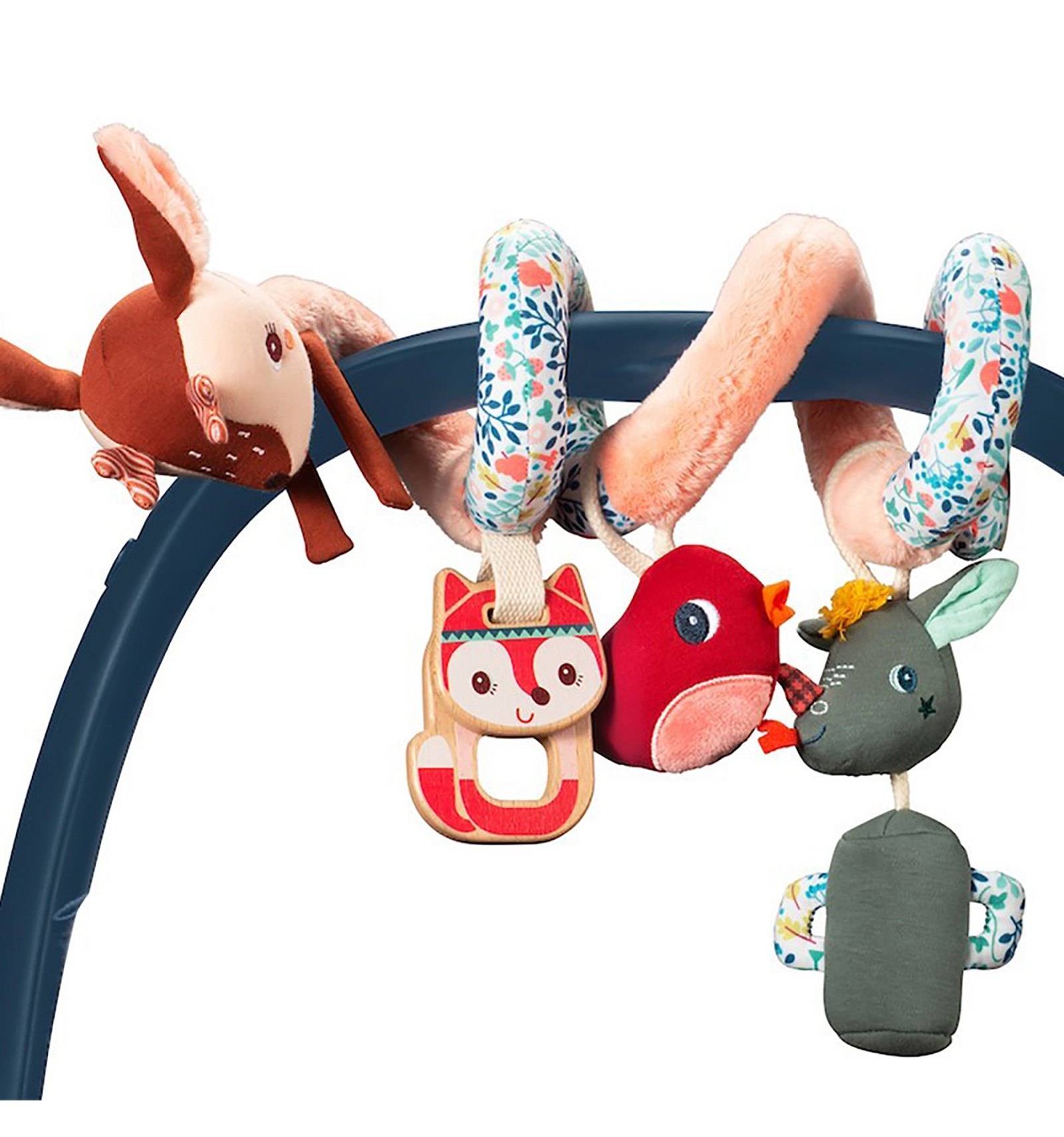 La divertida Stella se enrolla alrededor del parque, del carrito o de la sillita y despliega todas sus actividades para estimular a tu bebé. Con espejo, mordedor, campanilla... con los que desarrollar los sentidos. Gracias a su forma en espiral se adapta a cualquier forma, recta o curva. Medidas 48x15x10 cm. Desde el nacimiento.