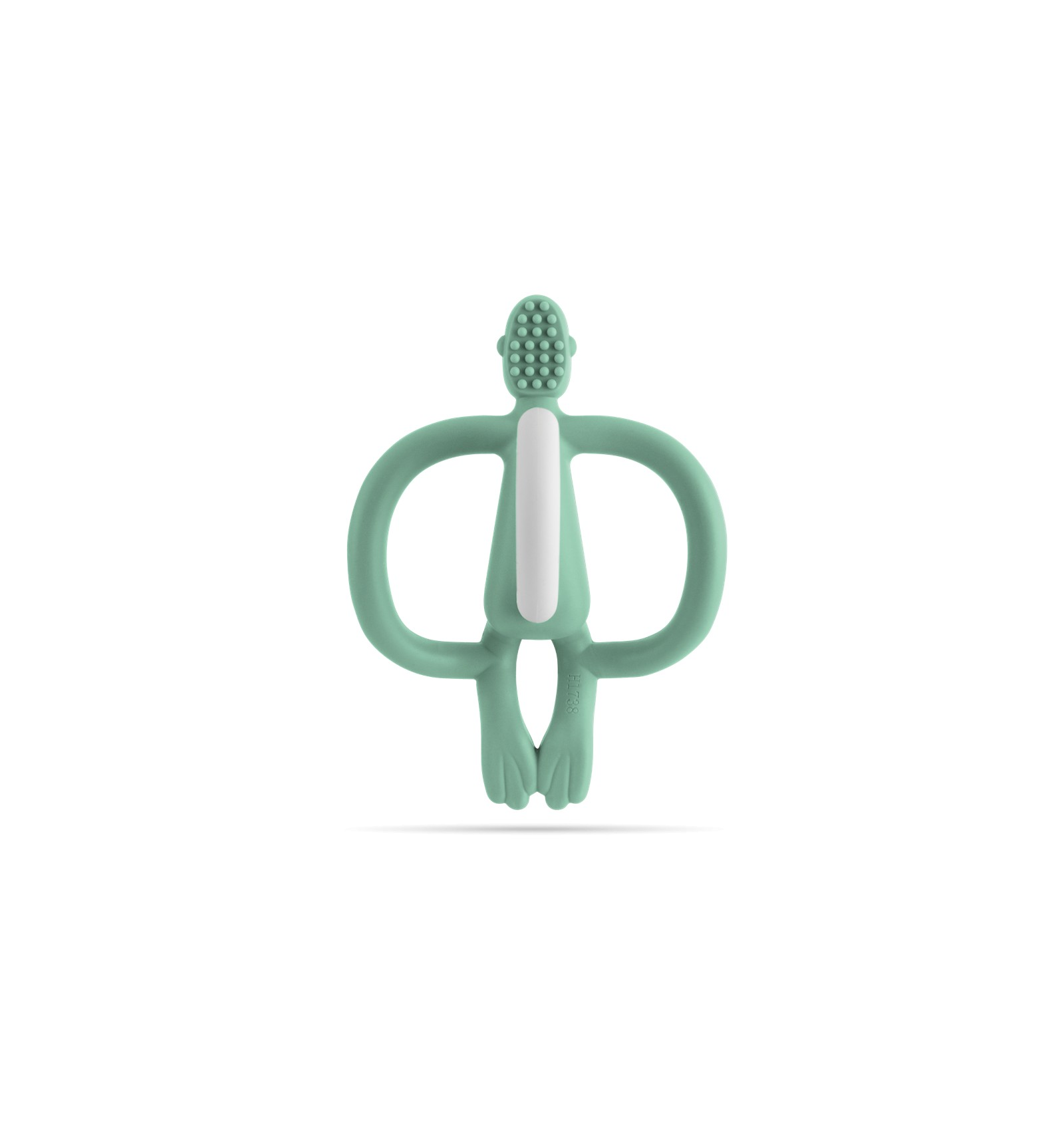 Es ideal para el periodo de dentición, ya que las pequeñas púas de la parte posterior de la cabeza del mono reconfortan al bebé y, además, permiten aplicar gel para conseguir un mejor efecto calmante, sirviendo como preentrenamiento al cepillo de dientes. También se puede enfriar en el congelador para calmar mejor el dolor de los bebés mientras lo muerden.