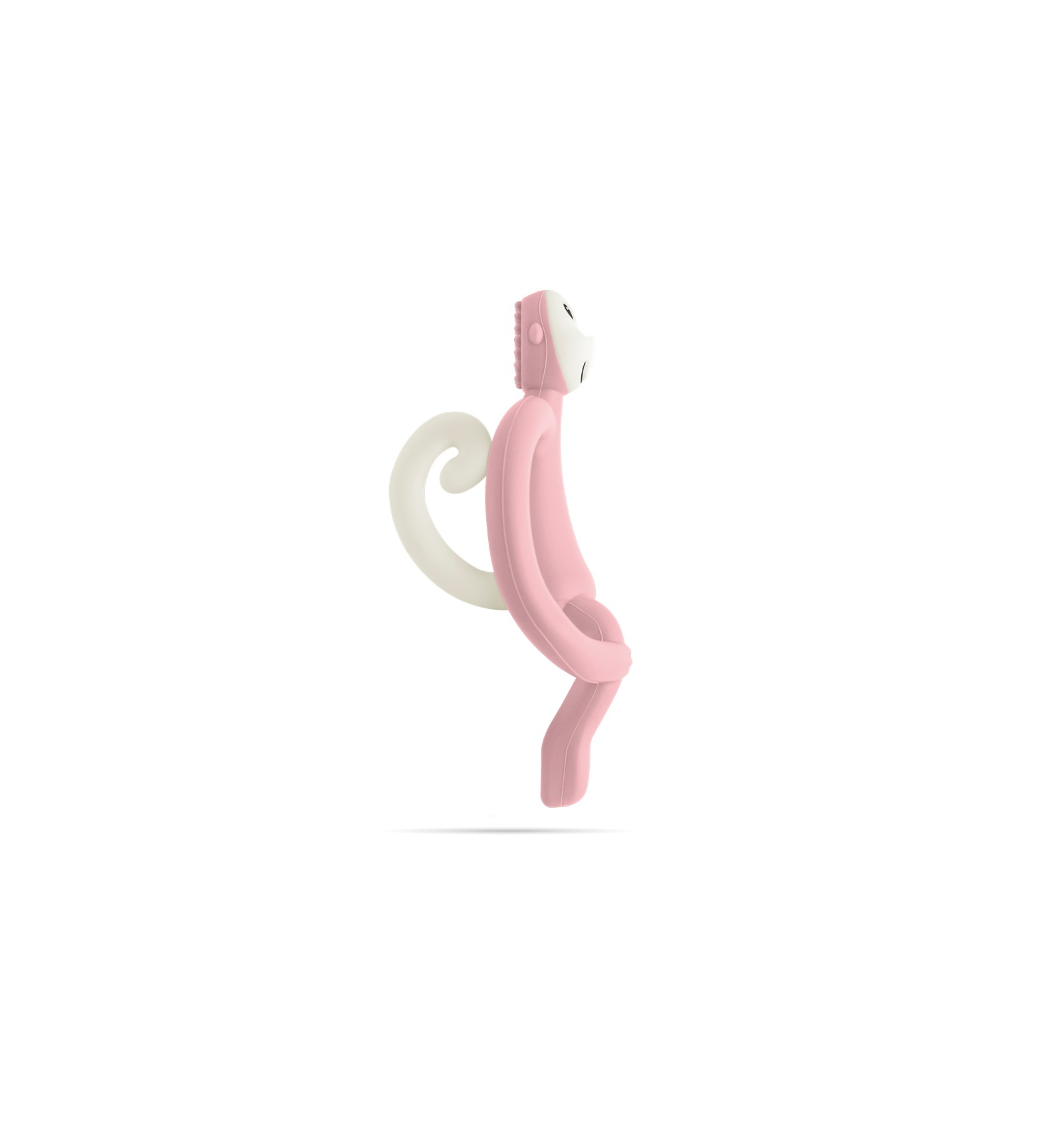 Es ideal para el periodo de dentición, ya que las pequeñas púas de la parte posterior de la cabeza del mono reconfortan al bebé y, además, permiten aplicar gel para conseguir un mejor efecto calmante, sirviendo como preentrenamiento al cepillo de dientes. También se puede enfriar en el congelador para calmar mejor el dolor de los bebés mientras lo muerden.