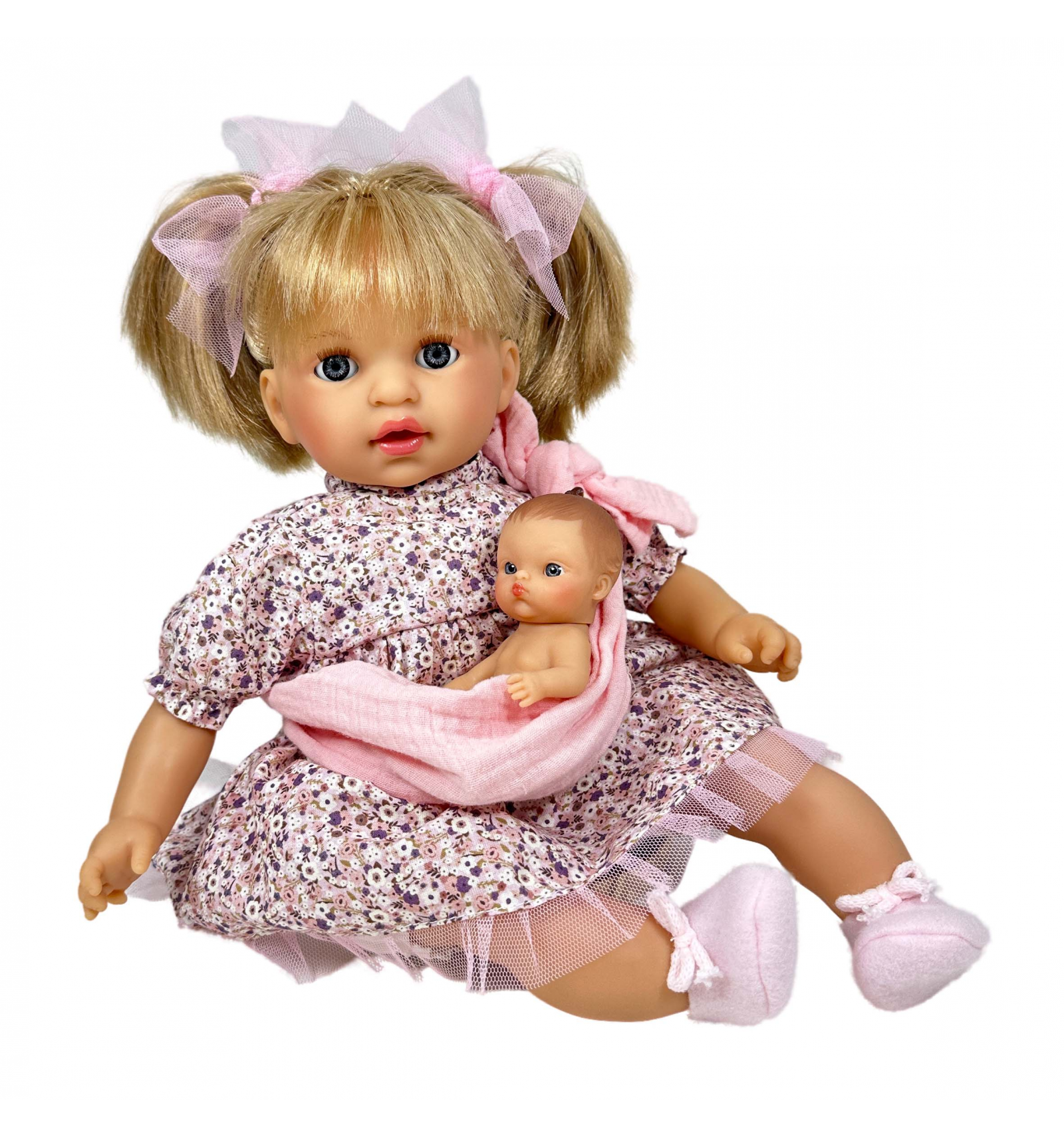 Su diseño cuidado y su expresión dulce la convierten en una opción ideal para quienes buscan una muñeca bebé con bebé, perfecta para el juego simbólico.