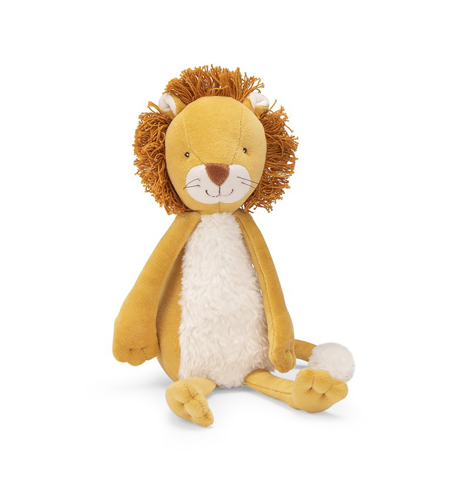 Este peluche infantil combina tejidos suaves y agradables al tacto, incluyendo una melena con textura que aporta una experiencia sensorial enriquecedora.