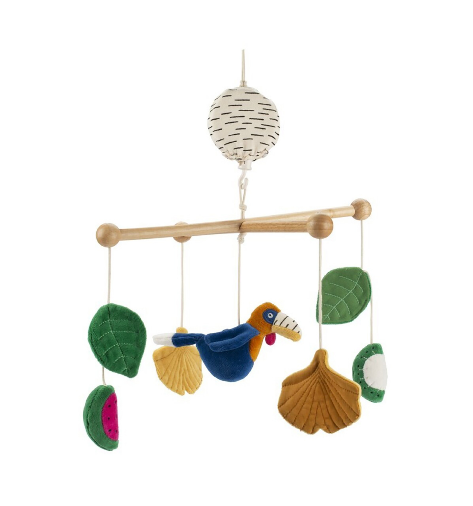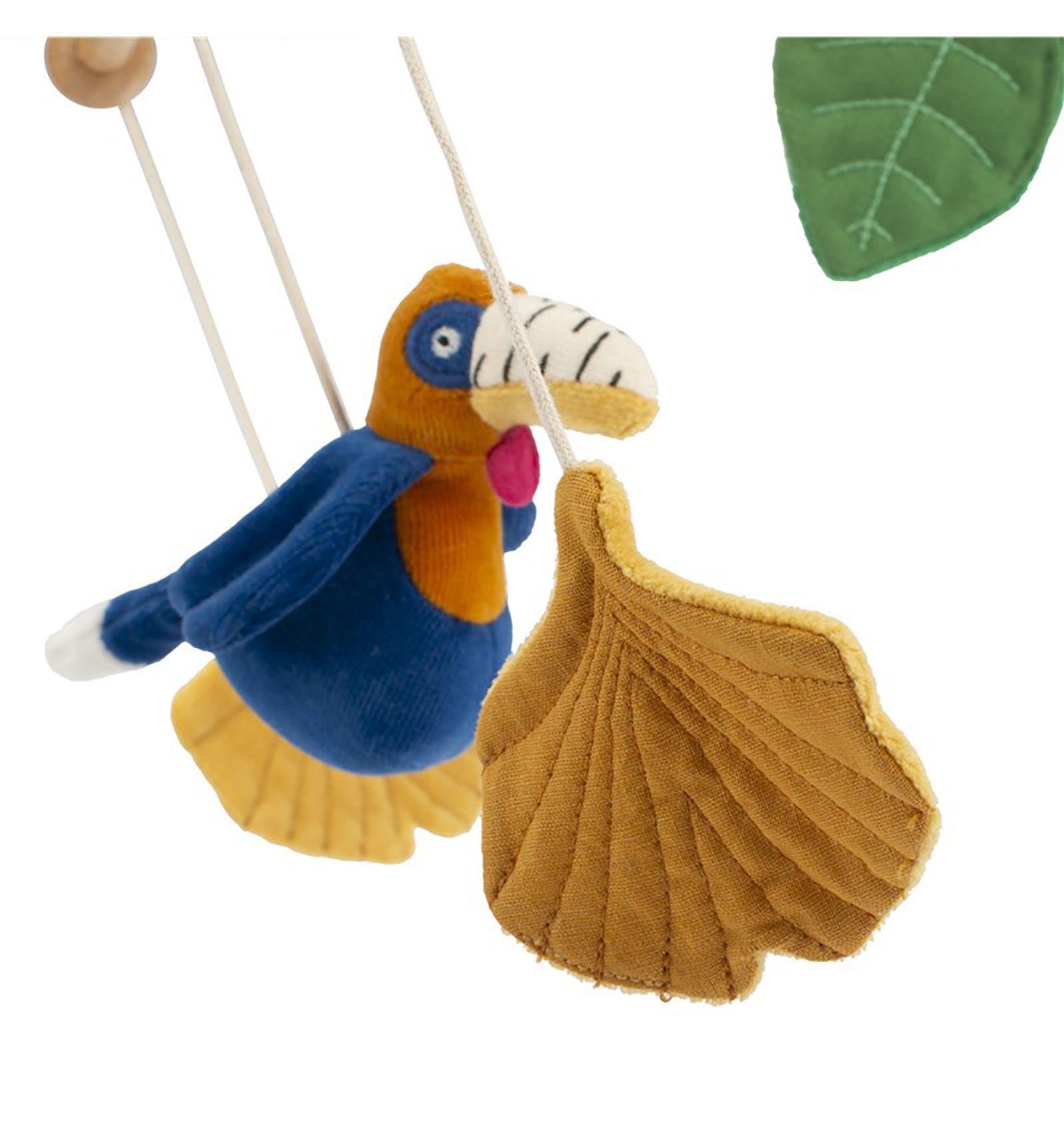 Las figuras colgantes de la colección Forêt Mawa giran suavemente, captando la atención del bebé y estimulando su desarrollo visual.