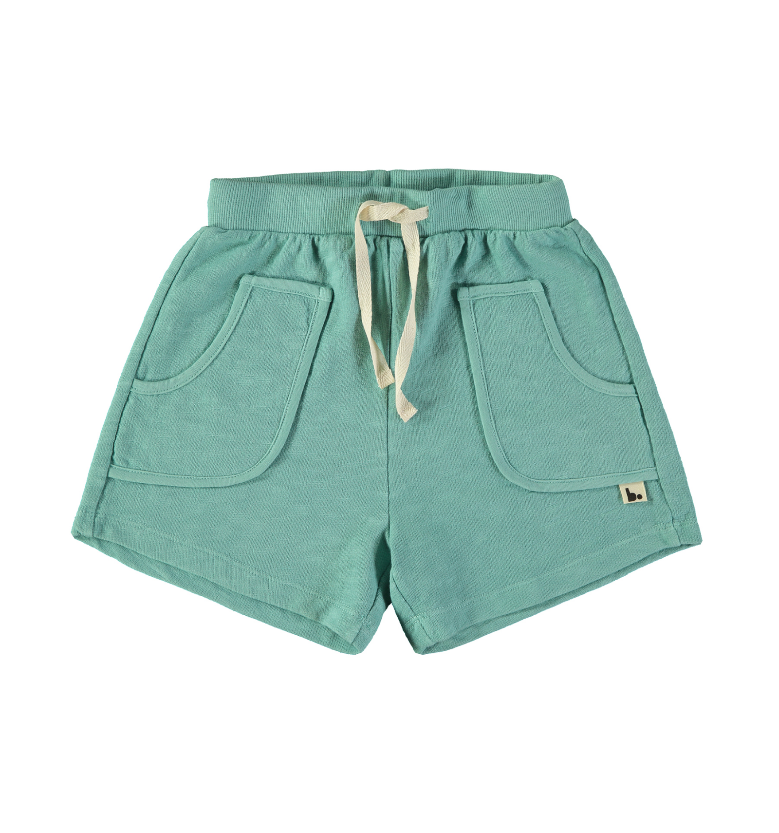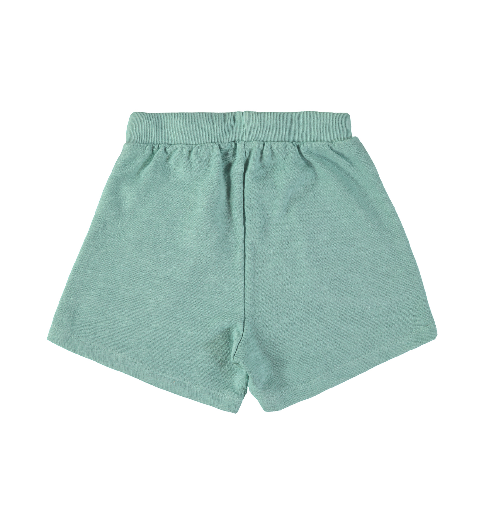 Pantalón corto Babyclic en felpa flameada 100% algodón orgánico. Suave y ligero, con cintura elástica, bolsillos de plastrón y cinta de espiga para ajuste.