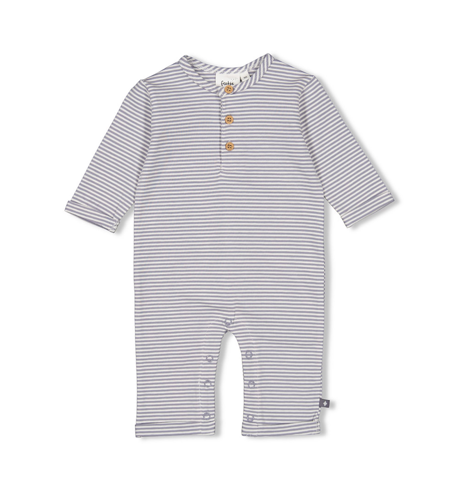 Pelele Feetje de la marca holandesa para bebés, hecho con 92% algodón orgánico y 8% elastano. Incluye botones de madera en el pecho y botones de presión en la entrepierna para facilitar el cambio de pañal. Cómodo y práctico para el día a día. ¡Añádele la chaqueta reversible al look!