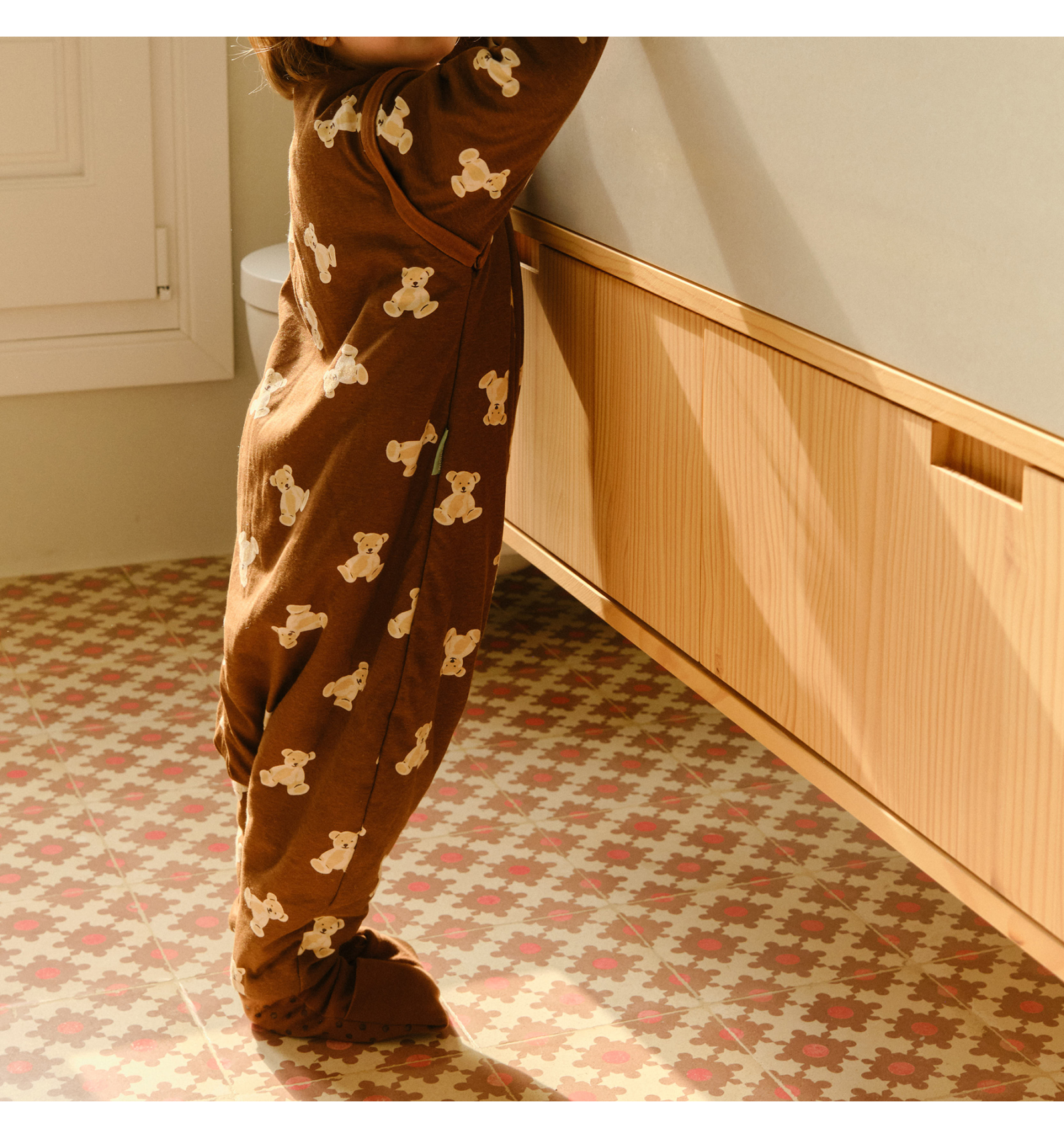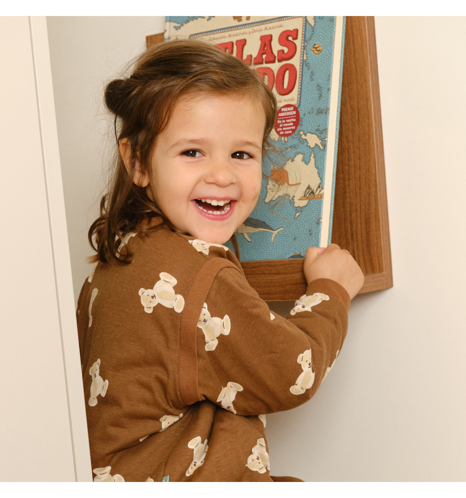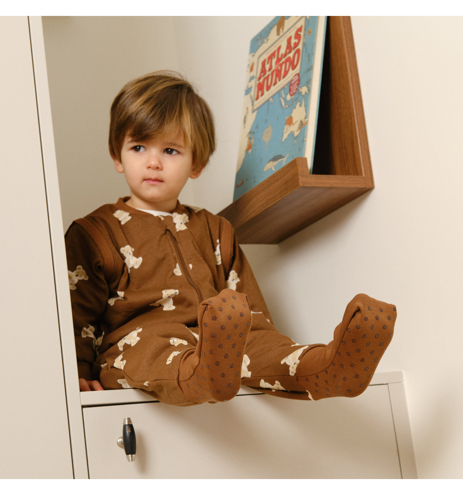 El Pijama Manta de Entretiempo de Molis & Co mantiene a tu peque calentito y libre para moverse. Incluye calcetines antideslizantes extraíbles y está confeccionado con algodón de origen Better Cotton y materiales reciclados. Ideal para habitaciones de 21–23ºC. Suave, cómodo y sostenible.