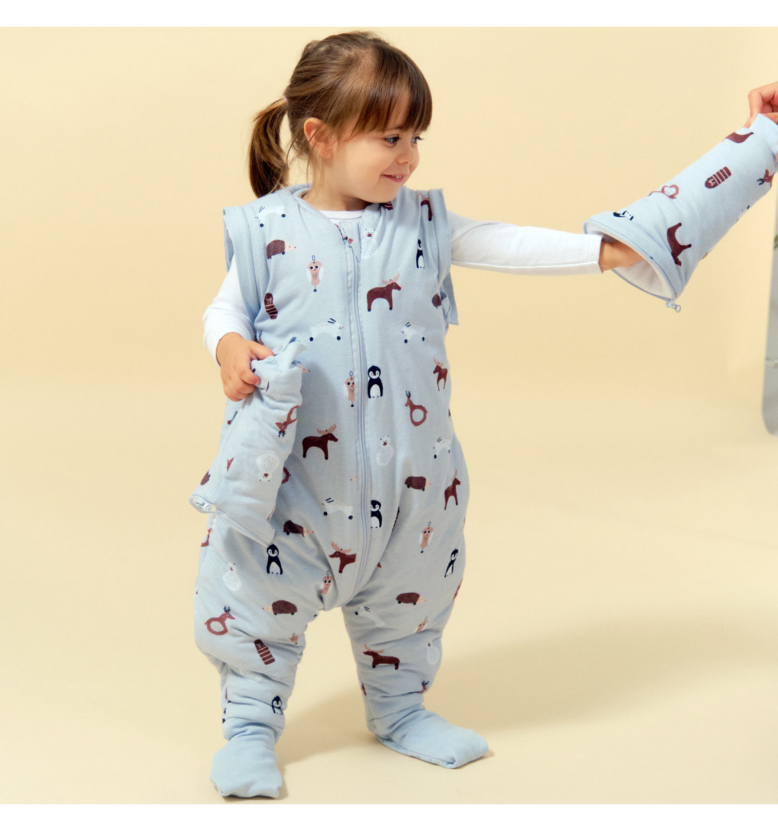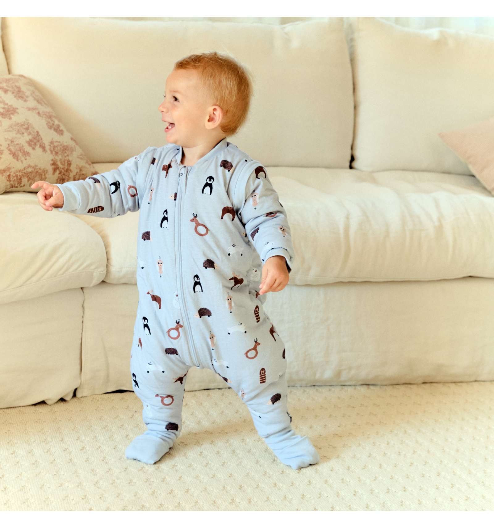 ¡Mangas y calcetines, todo en uno! El Pijama Manta de Invierno de Molis & Co mantiene a tu peque abrigado y cómodo mientras duerme o juega. Con calcetines antideslizantes extraíbles y mangas con cremallera, permite total libertad de movimiento. Fabricado con algodón Better Cotton y materiales reciclados. Ideal para habitaciones de hasta 21 °C.