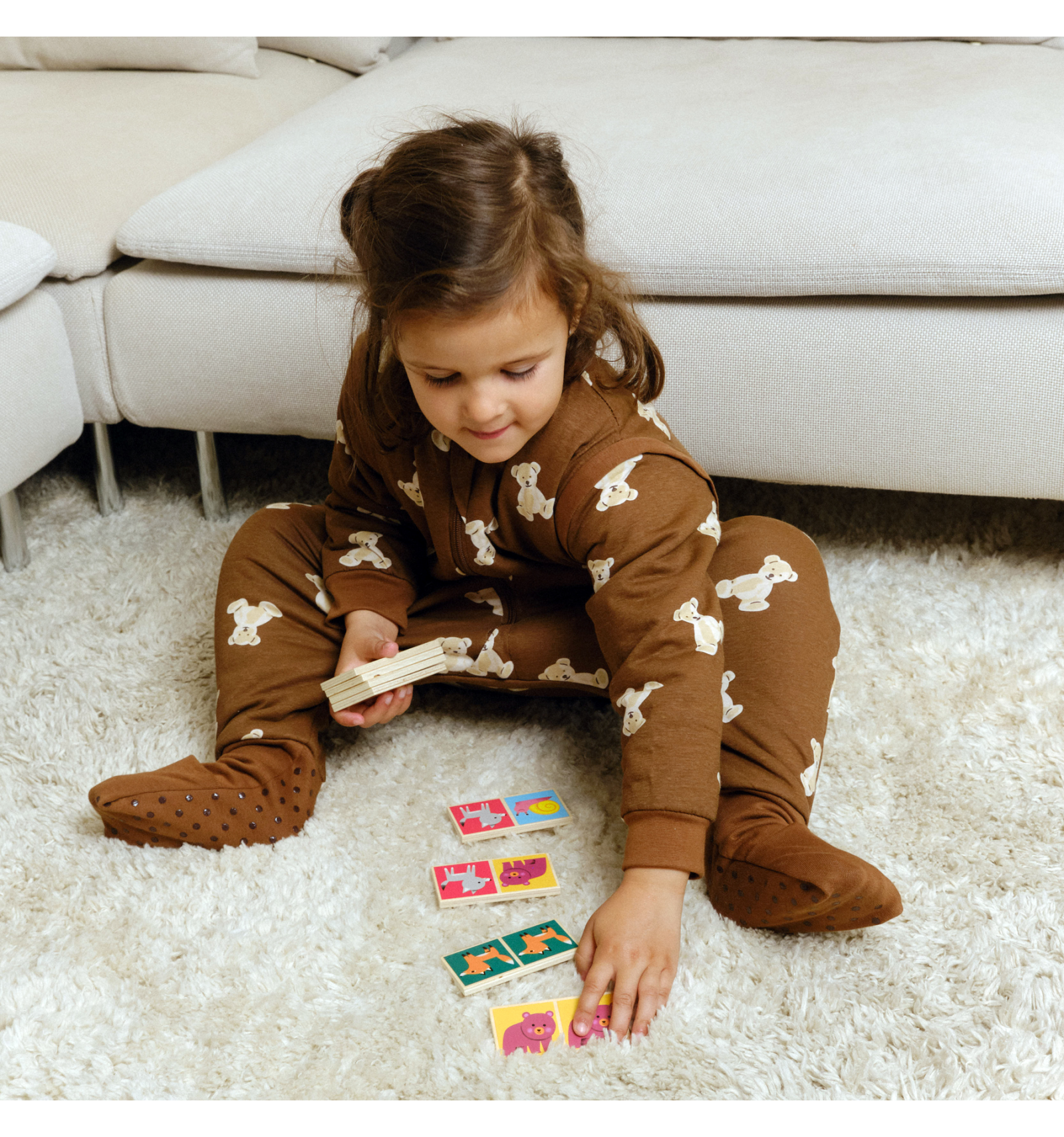 El Pijama Manta de Entretiempo de Molis & Co mantiene a tu peque calentito y libre para moverse. Incluye calcetines antideslizantes extraíbles y está confeccionado con algodón de origen Better Cotton y materiales reciclados. Ideal para habitaciones de 21–23ºC. Suave, cómodo y sostenible.