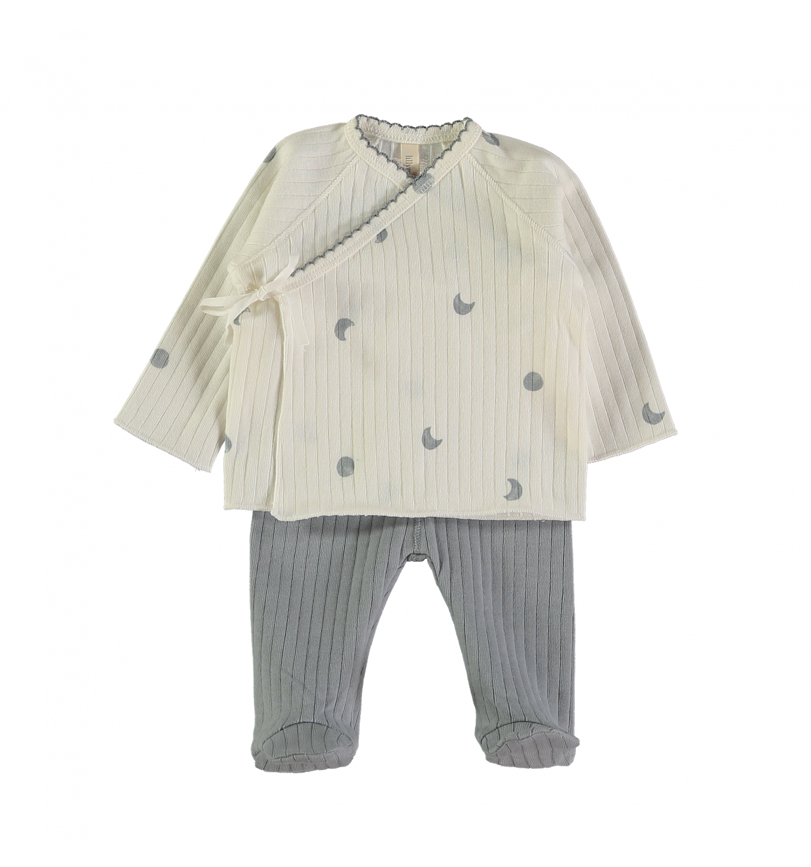 Tierno conjunto de jubón y pantalón con un bonito y sencillo diseño de la marca Lillymom. Ideal para primera muda en el hospital y para el primer mes de tu bebe. Suave y cómodo 100% algodón orgánico.