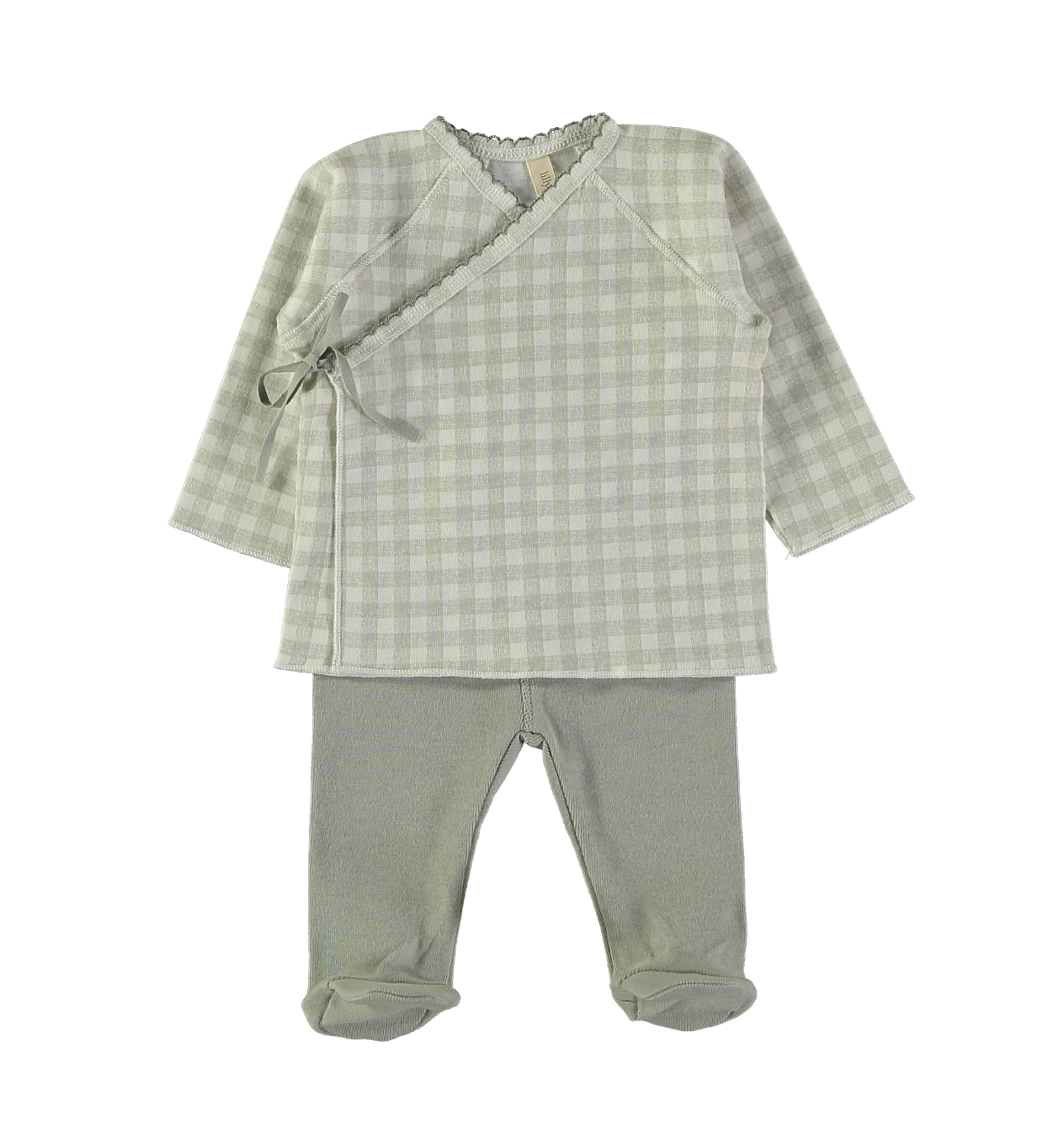 Tierno conjunto de jubón y pantalón con un bonito y sencillo diseño de la marca Lillymom. Ideal para primera muda en el hospital y para el primer mes de tu bebe. Suave y cómodo 100% algodón orgánico.