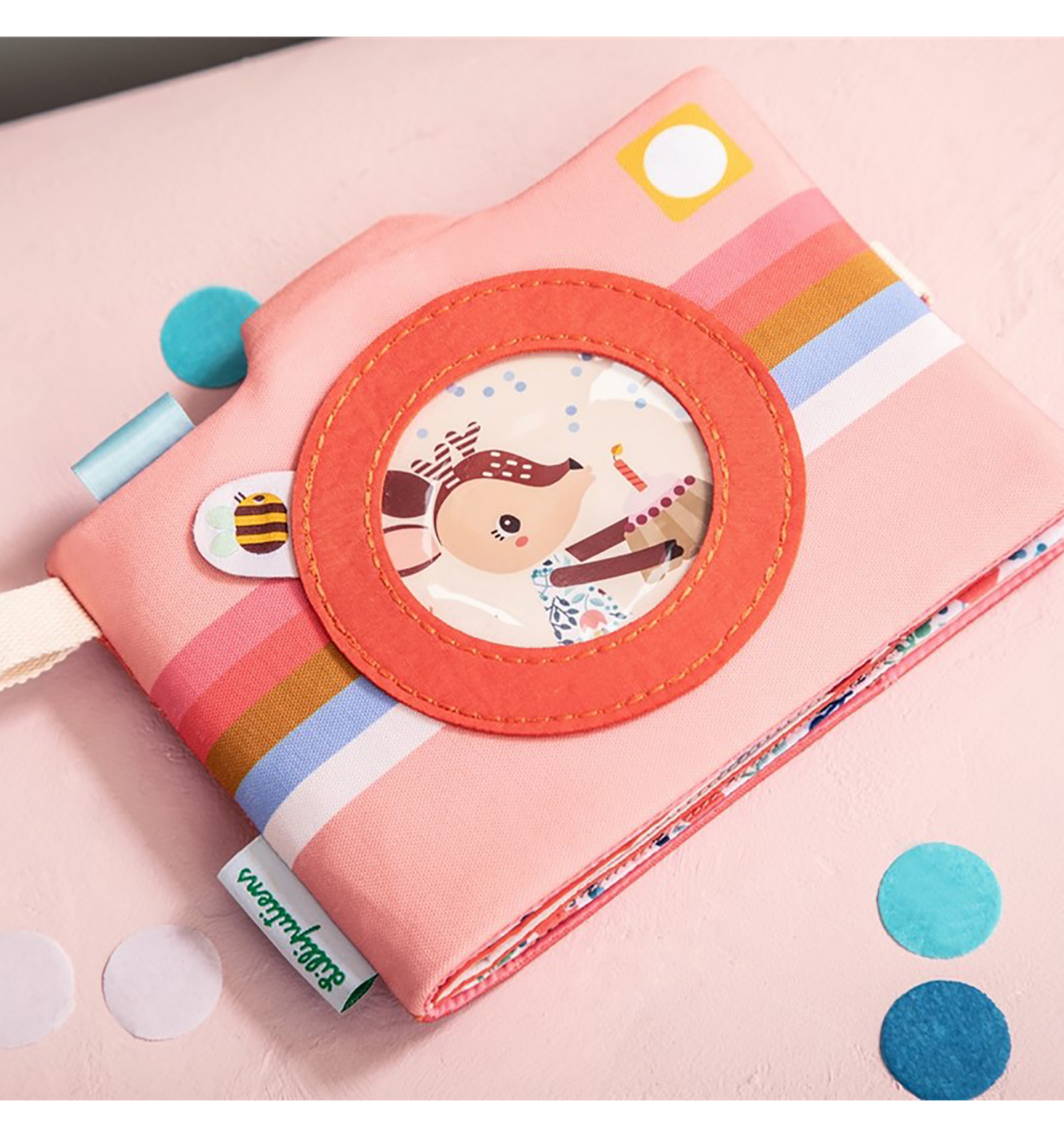 El bebé es el fotógrafo, con este colorido álbum de fotos. Poned una foto en la portada y 10 fotos más en sus respectivas fundas. De este modo, vuestros recuerdos estarán bien protegidos y a mano, para que tu bebé ejercite la vista, la motricidad, la imaginación y la reflexión. A partir de 9 meses.