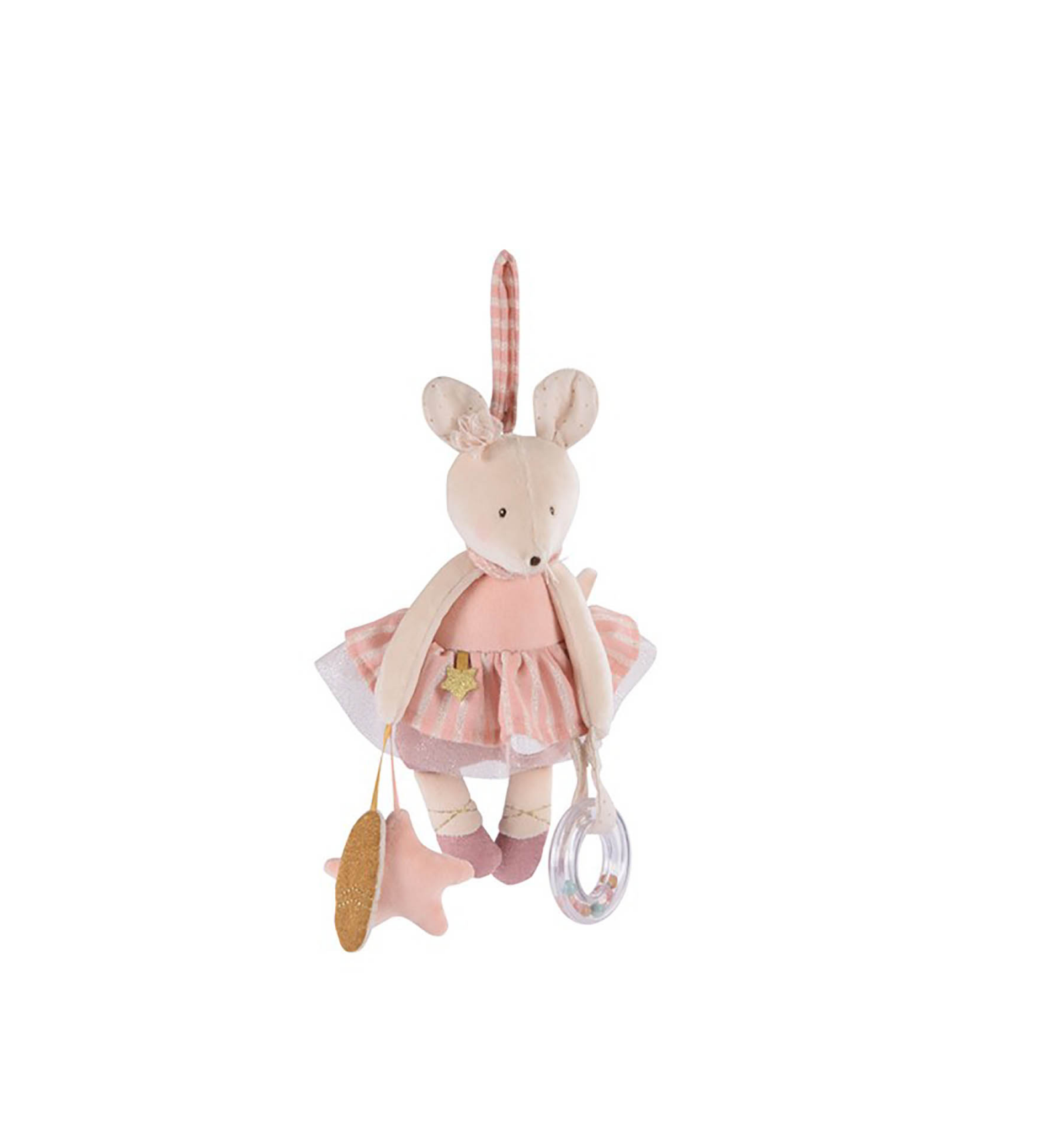 El ratón de actividades colgante de la colección La Petite École de Danse de Moulin Roty invita a los más pequeños a descubrir un mundo de ternura y exploración sensorial.