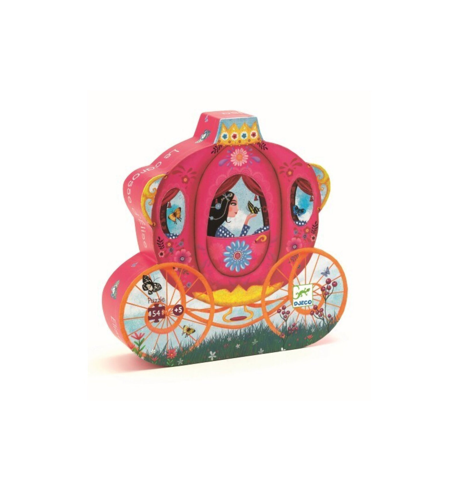 Puzzle infantil de 54 piezas con la carroza de la princesa Elisa, presentado en una bonita caja decorativa. Recomendado a partir de 5 años.